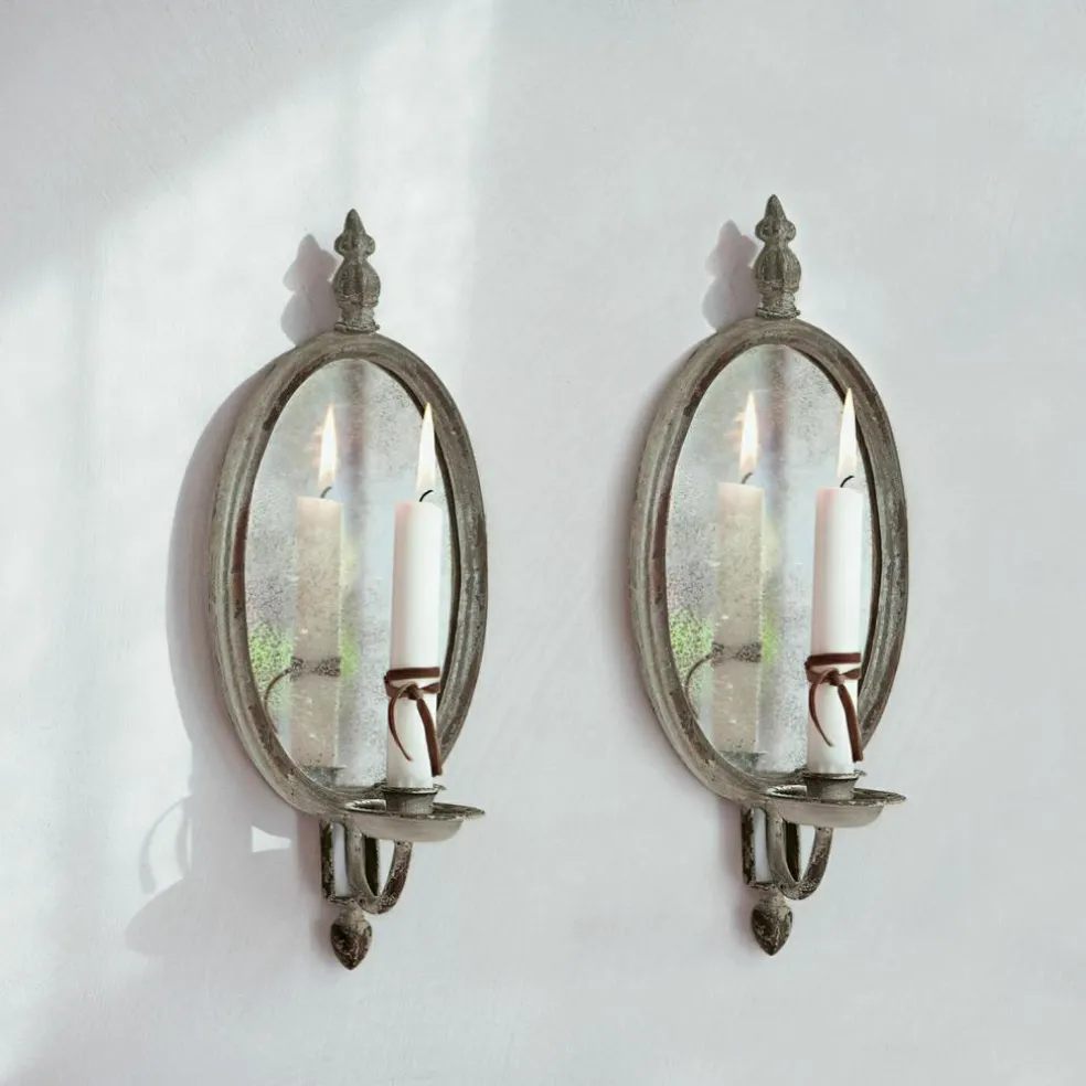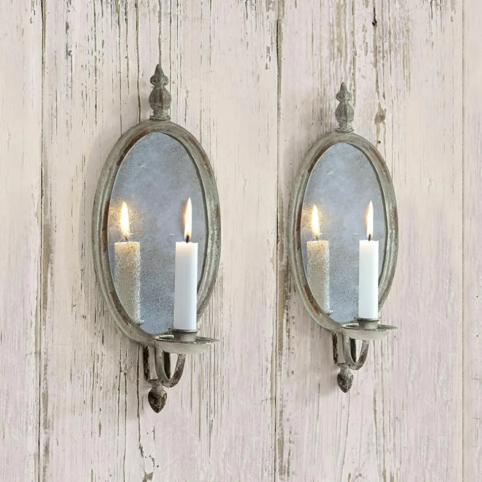 Dans son style ancien, il reflète joliment la lueur de la bougie. Ce bougeoir en forme de médaillon se fixe à un mur. Le cadre en fer séduit par son charme ancien et par son miroir légèrement terni. Les détails en forme de gouttes qui ornent le cadre confèrent à ce bougeoir mural un style unique. Le support à bougie est relié au cadre en fer par une tige arquée. Pratique : la coupelle du bougeoir recueille les gouttes de cire. Le design original de ce modèle exceptionnel est absolument irrésistible, avec ou sans bougie.