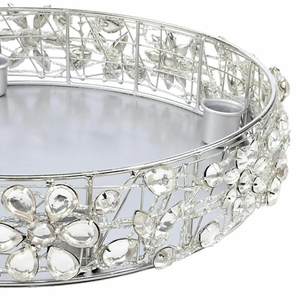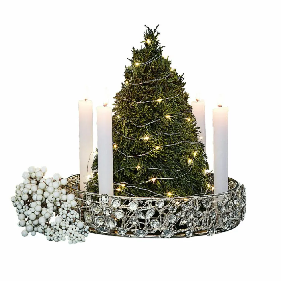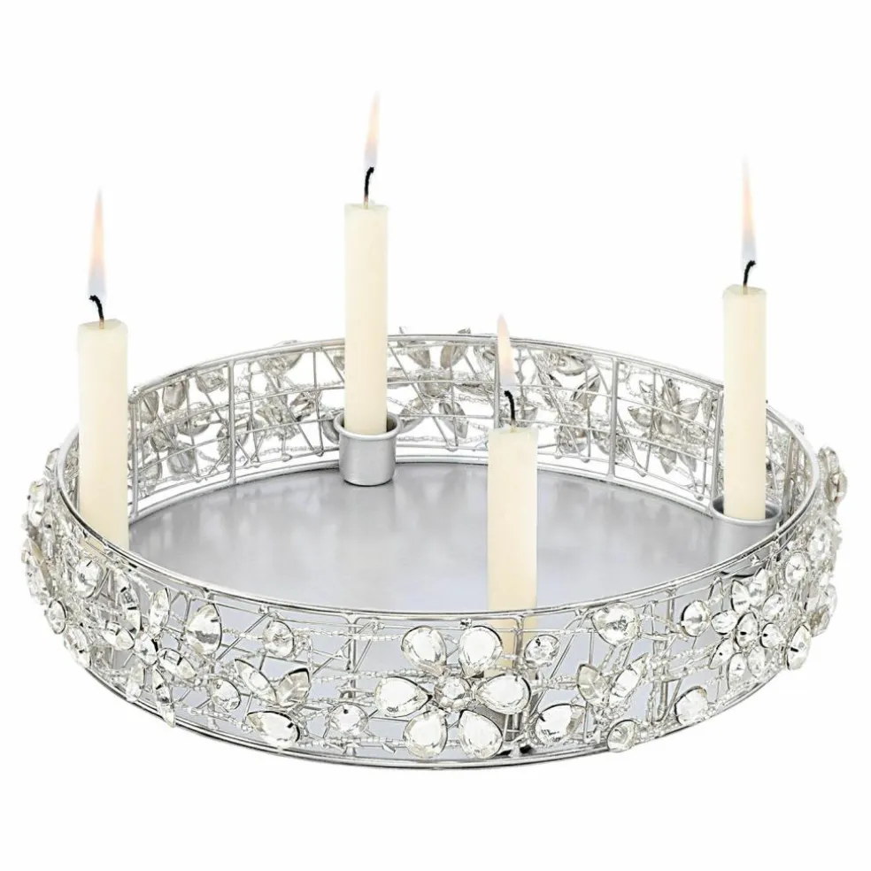 Une touche de glamour s’invite chez vous avec cette magnifique décoration. Ce porte-bougies en fer brillant est décoré de pierres de verre scintillantes qui brillent à la lumière des bougies. Une chaîne ornée de petites perles de verre s’enroule autour du bord. Ainsi, le bord scintille de mille feux. Au centre, il y a de la place pour quatre bougies (non incluses). Les bougies sont maintenues en toute sécurité dans leur support grâce à un pic supplémentaire. Les bougeoirs étant placés sur le bord, vous avez suffisamment de place au centre pour d’autres décorations. Le fer brillant attire déjà l’attention, mais vous pouvez encore faire preuve de créativité avec des feuilles, des branches, des figurines et bien plus encore. Vous avez ici de la place pour votre décoration saisonnière. Ainsi, ce porte-bougies décorera votre intérieur tout au long de l’année et peut également être utilisé comme couronne de l’Avent à Noël. Appréciez son design élégant à l’état pur ou créez d’autres décorations originales. Laissez libre cours à votre imagination. Dans tous les cas, ce bijou apportera une touche d’élégance à votre intérieur et constituera un véritable point d’orgue à tout moment.