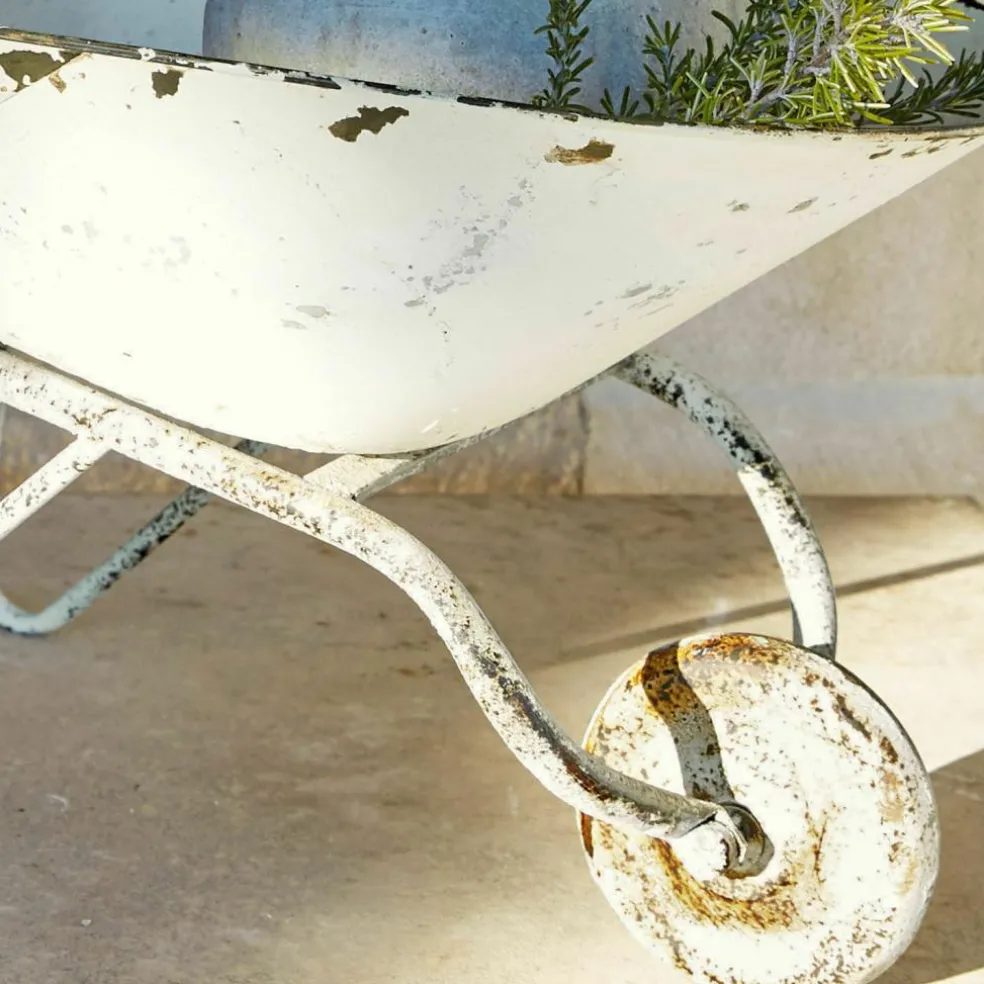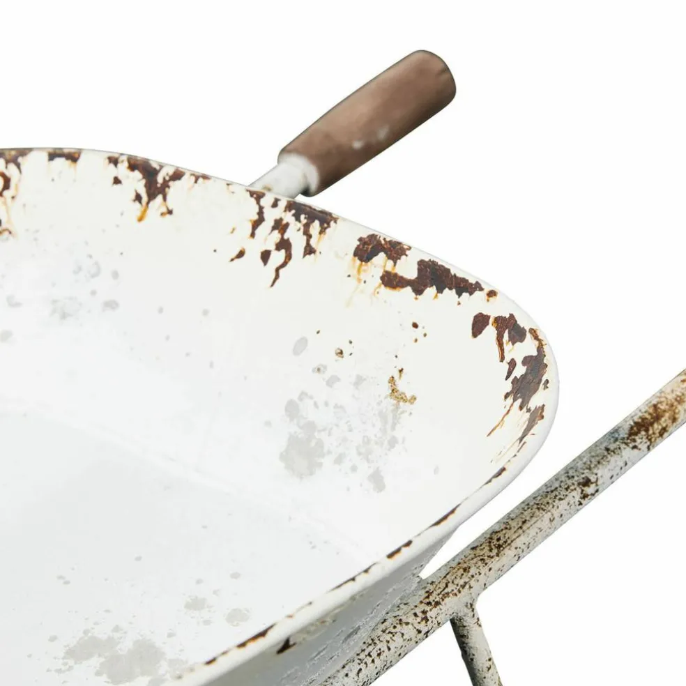 Un objet décoratif charmant pour une atmosphère romantique. Conception haut de gamme en fer et en bois de pin. Effet « rouille » rustique grâce à sa finition vieillie. Un jardin enchanté, une grange romantique : cet objet de décoration a l’air de sortir tout droit d’un petit coin de campagne idyllique. La brouette est fabriquée à partir de matériaux durables et de qualité. Elle est en fer et les poignées sont en bois de pin. Sa finition vieillie rustique lui confère un aspect singulier. Elle apporte un aspect rouillé que l’on retrouve également sur les anciens outils de travail et les ustensiles qui ont résisté aux années. La roue ne tournant pas, la brouette ne peut être utilisée qu’à des fins décoratives. Mais même comme cela, elle dégage un aspect champêtre quel que soit l’endroit où elle est placée.
