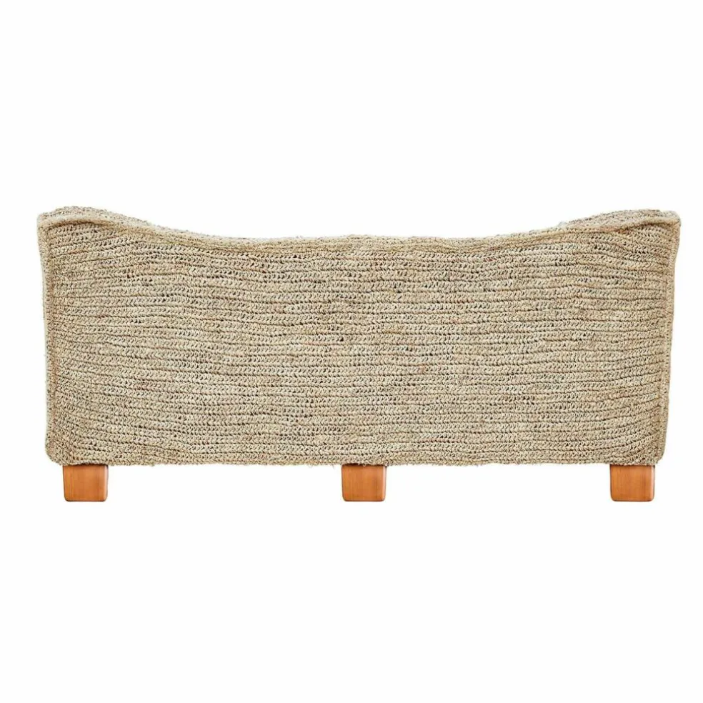 Décontracté, unique et avec un sérieux penchant pour les pièces artisanales, le look bohème est sans surprise constamment remis au goût du jour et fascine depuis plusieurs générations ! C’est à l’extérieur, là où l’on se sent généralement plus décontracté, que ce style original révèle son charme particulier de manière tout à fait naturelle. Ce canapé, qui a tout du style bobo-chic, occupera immédiatement une place centrale dans votre salon d’été. Vous ne pourrez résister au motif tressé de son tissu, superbement réalisé à la main ! Son style original vous fascinera tout autant que son matériau, puisqu’il est fabriqué à partir de vraies feuilles de palmier, une ressource renouvelable et donc durable, que l’on rencontre rarement dans l’ameublement et qui donne à ce canapé un aspect très particulier. En revanche, le solide cadre et les pieds massifs sont fabriqués en bois noble de teck, un matériau couramment utilisé pour les meubles de jardin. Conseil: pour un ensemble élégant, vous pouvez compléter ce canapé avec le fauteuil assorti.