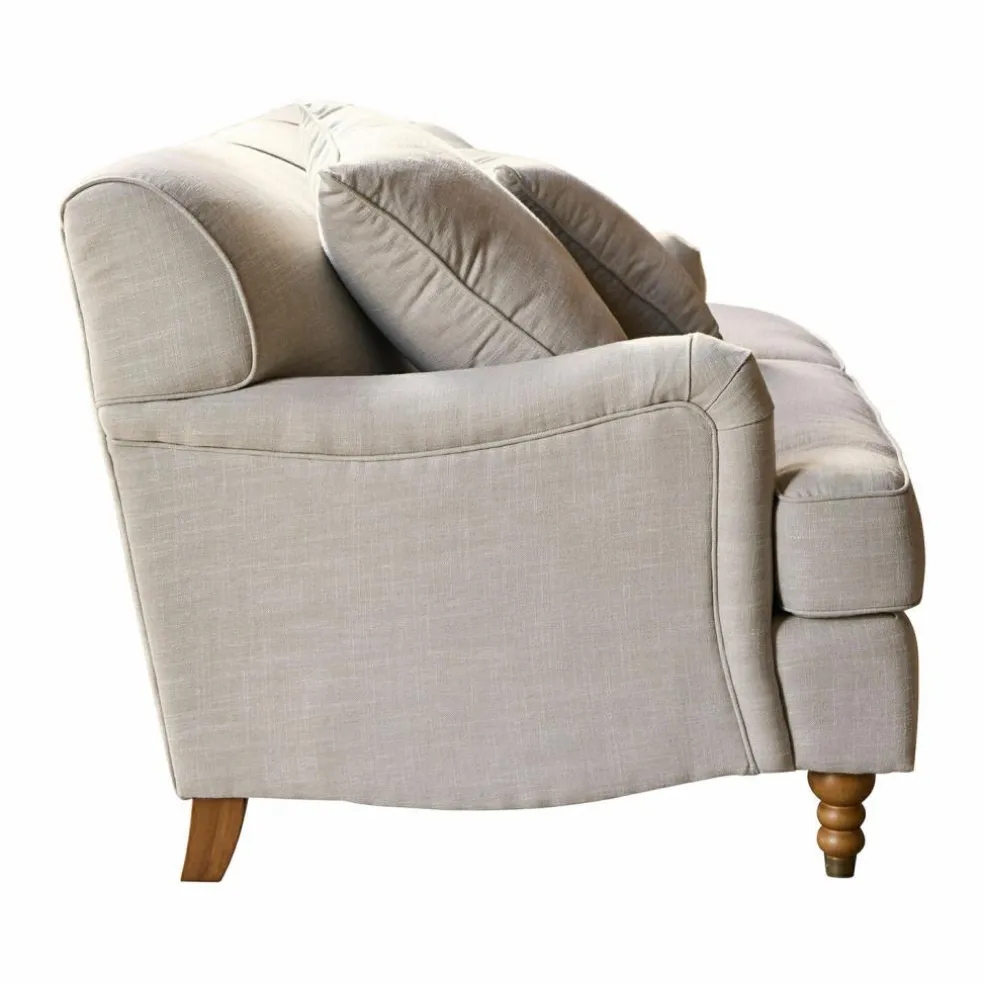 Un grand classique design qui allie un confort d’exception et une élégance hors pair ! Son rembourrage très confortable, ses nombreux coussins et sa housse en lin haut de gamme en font un canapé absolument merveilleux. Bâti solide en bois de pin avec des pieds en bois de caoutchouc. Cette interprétation actuelle du canapé classique mise sur un luxueux confort, allié à de discrets détails rafraîchissants. Ainsi, ce canapé au coloris sobre et aux lignes épurées acquiert une jolie touche cosy grâce à ses nombreux coussins moelleux. Grâce à son bel aspect intemporel, il deviendra vite votre nouvel endroit favori de la maison ! Vous vous y installerez dans un coin avec un bon livre ou un magazine, ou vous y allongerez de tout votre long avec plein de coussin sous la tête ! Vos convives, eux non plus, ne manqueront pas de s’installer dans votre canapé pour profiter de l’incroyable bien-être que procure son rembourrage en mousse haut de gamme et ses cinq coussins moelleux. Au quotidien, ce canapé s’avère très facile à vivre ! D’un côté grâce à sa housse très douce et très solide, et de l’autre par ses coussins dotés de zips permettant de les déhousser à votre guise. Le bâti solide est en pin, les pieds tournés en caoutchouc.