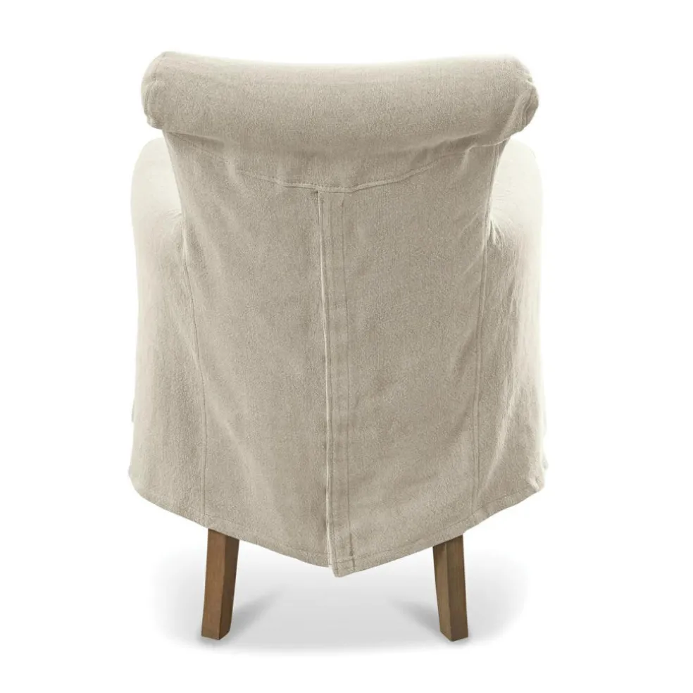 Cette chaise intemporelle séduit par son style charmant. Structure et pieds en chêne massif, fabrication à la main et rembourrage confortable. La housse est confectionnée dans un coton facile à entretenir. Le style simple et élégant du fauteuil se marie avec bon nombre de styles d’intérieurs et s’intègrera aussi bien dans le séjour que dans la salle à manger. Le confort rime ici avec style !