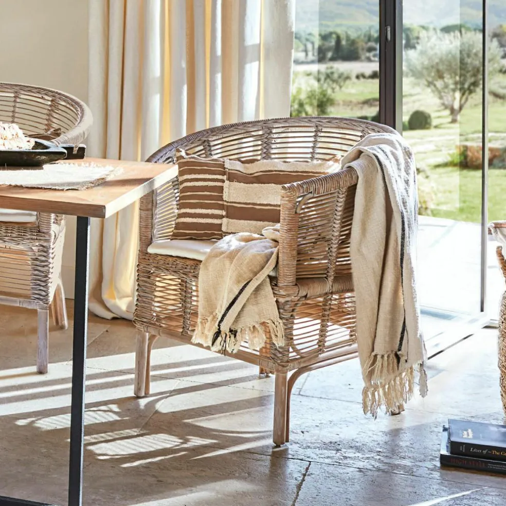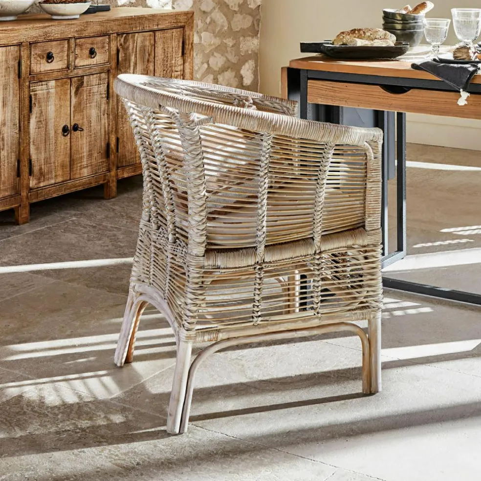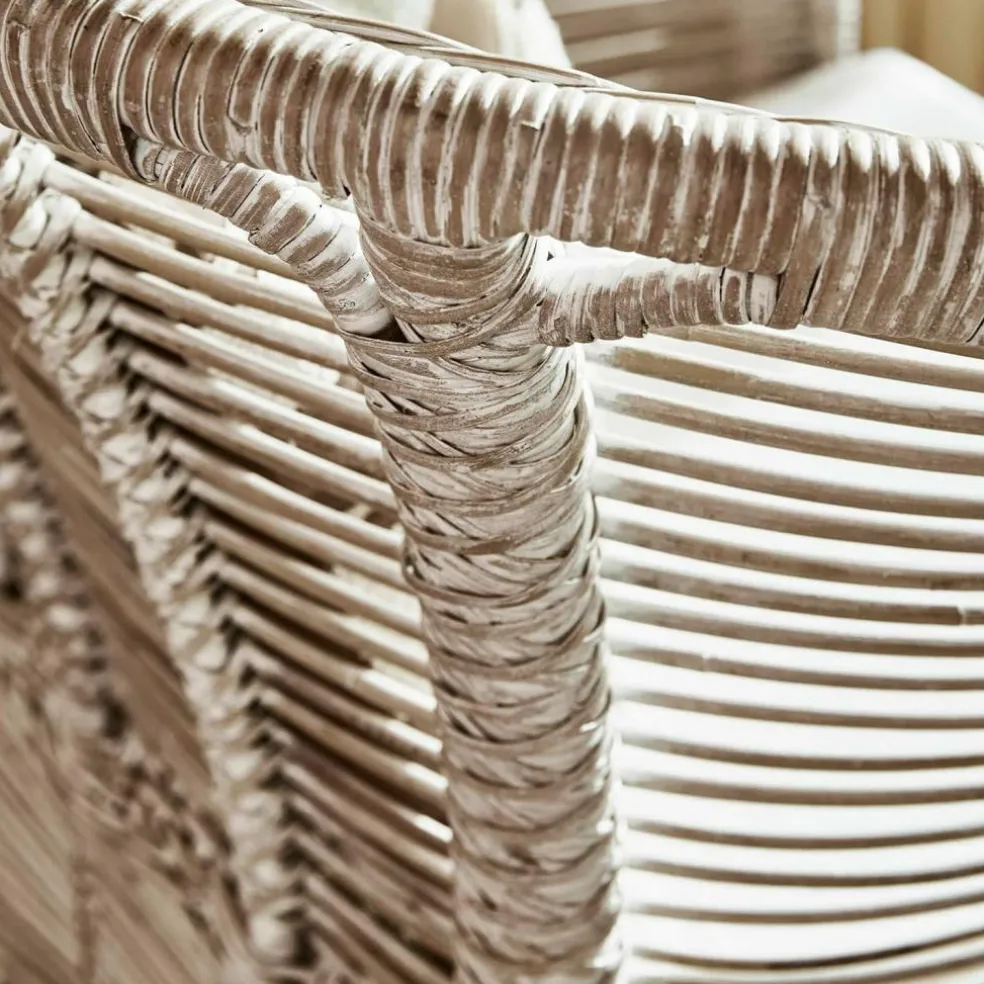 Avec cette magnifique chaise en rotin, vous apporterez une touche de nature et d’élégance à votre intérieur. Sa délicate finition blanchie lui procure un charme d’inspiration vintage qui s’intègre à merveille dans tous les styles d’intérieurs. Le rotin, un matériau résistant, a été tressé minutieusement par des artisans chevronnés pour former une structure solide et néanmoins légère et aérée. Le coussin d’assise confortable et décoratif à la fois invite à lâcher prise et à profiter du moment, tandis que la surface facile d’entretien vous garantit de garder cette chaise comme neuve sans trop d’effort. Ce meuble n’est pas qu’une simple assise , il incarne la qualité de vie et viendra rehausser votre pièce tout en diffusant calme et sérénité.