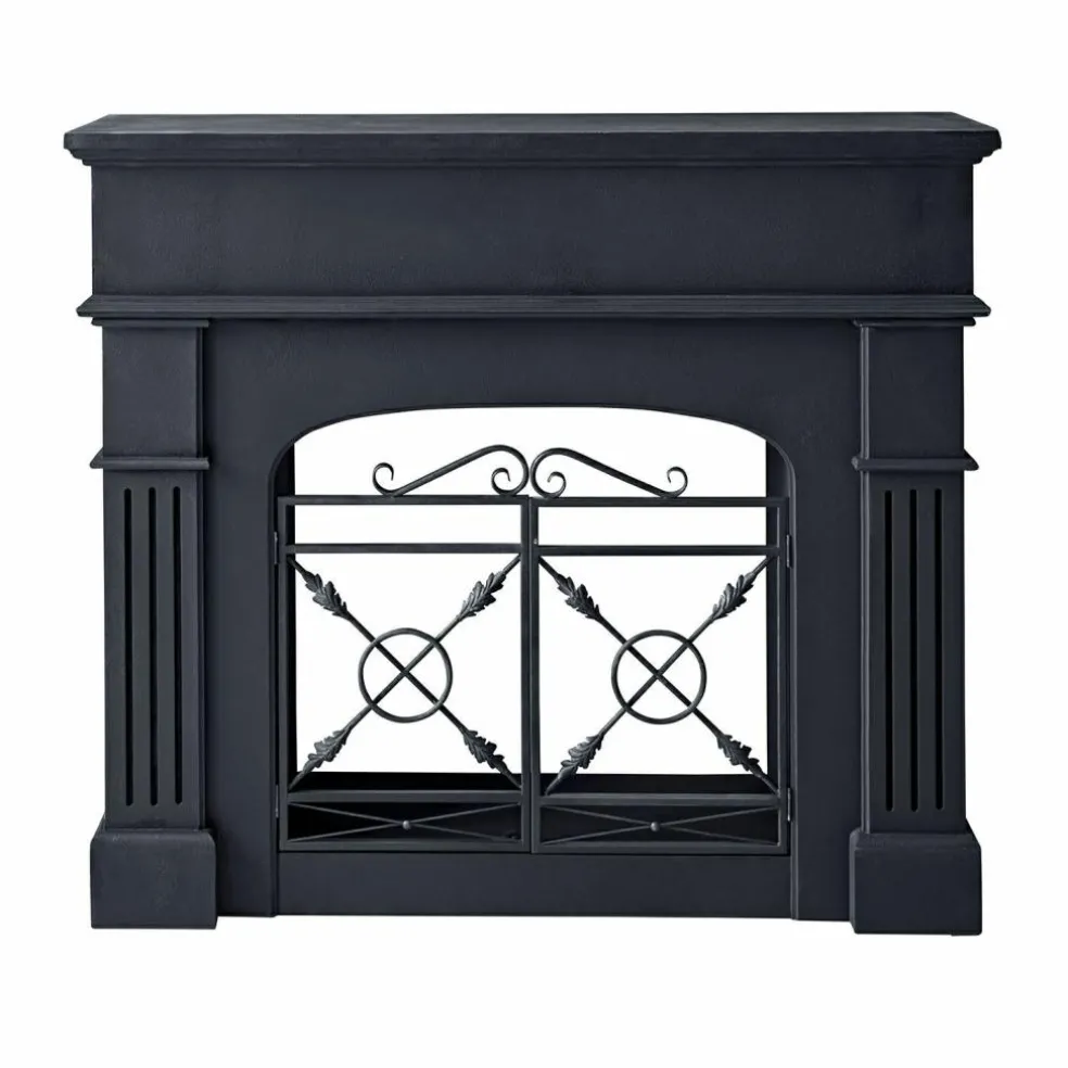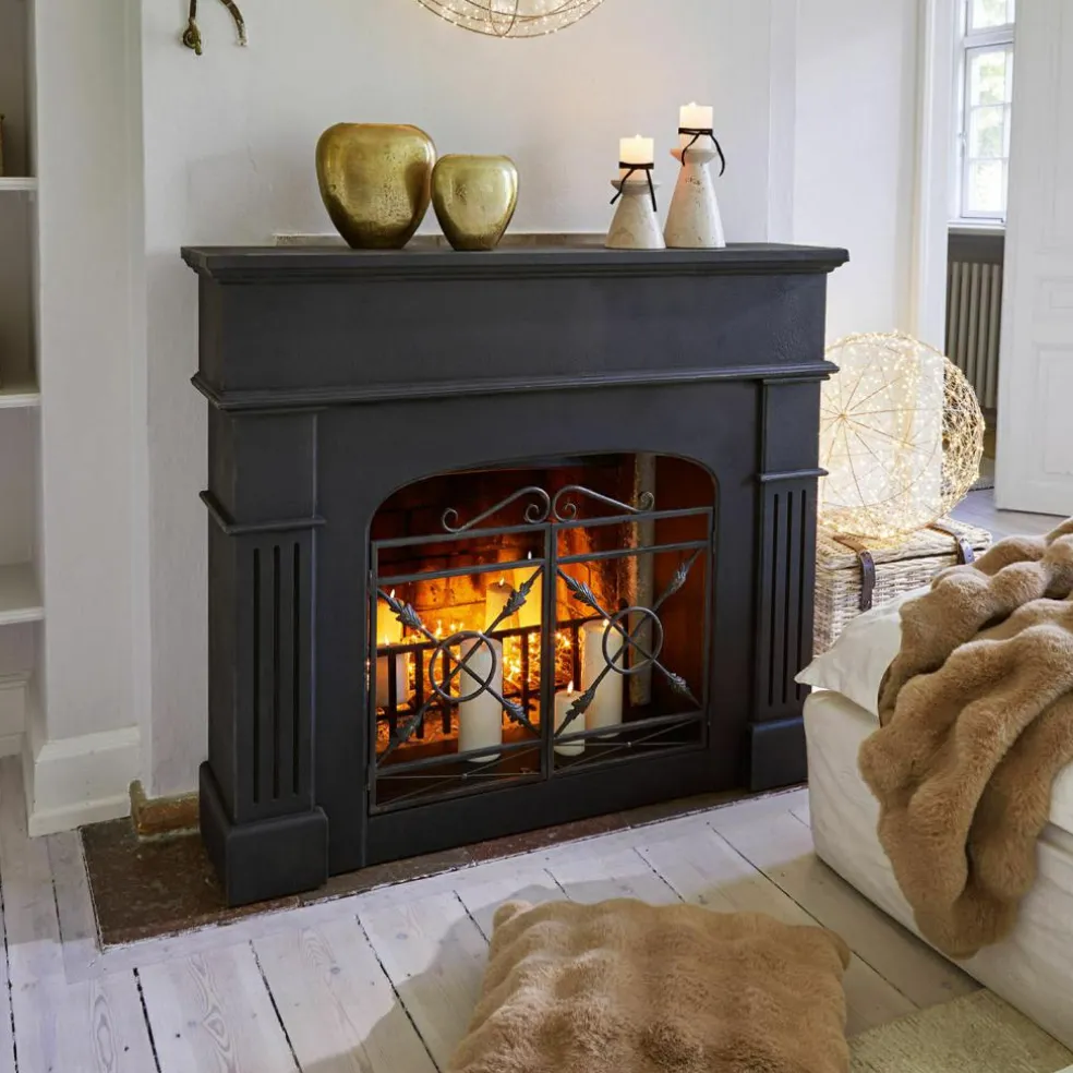 Une cheminée qui n’a pas besoin de feu pour réchauffer la pièce – son aura fait l’affaire! Cette console de cheminée séduit par ses lignes claires, son noir antique profond et sa surface mate qui présente volontairement des irrégularités. L’élément en fer joliment travaillé dans la partie inférieure, qui rappelle les grilles de protection qui agrémentent les cheminées traditionnelles, attire particulièrement l’attention et confère à l’ensemble une note authentique. Que ce soit dans le salon, l’entrée ou la chambre à coucher, cette pièce est plus qu’une décoration: c’est à la fois une scène, un cadre et une véritable pièce maitresse.