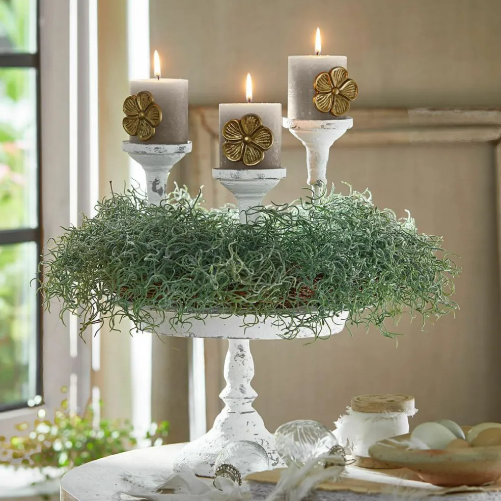 Plongez dans la beauté de la nature avec cette couronne unique en son genre, fabriquée en rotin naturel. La structure grossière du rotin constitue une base parfaite, encadrée par de délicates fibres de mousse vertes qui semblent authentiques et qui apportent une vivacité rafraîchissante dans chaque pièce. Les brins de rotin aux courbes douces s’harmonisent merveilleusement bien avec la mousse douce qui recouvre la couronne comme un voile délicat. Que ce soit sur la porte d’entrée pour souhaiter la bienvenue ou comme élément phare de votre décoration intérieure, cette couronne attire tous les regards et confère à votre intérieur un rayonnement chaleureux et naturel. Un compagnon idéal pour toutes les saisons et un cadeau de bon goût pour les amateurs de décorations naturelles authentiques.