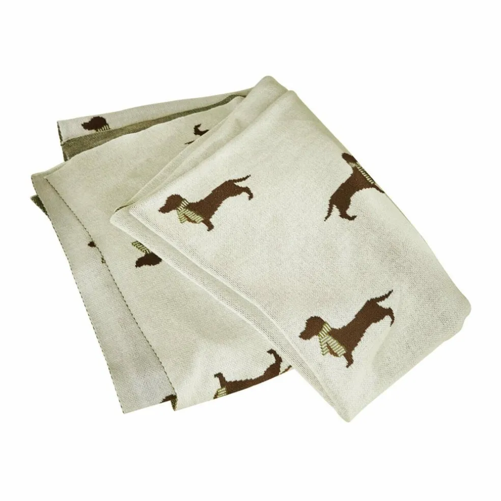 Cette couverture apporte non seulement du confort, mais fait aussi un clin d’œil à votre intérieur grâce aux motifs ludiques de teckels avec écharpe tricotés dans un fin motif jacquard. Le coton doux est agréable au toucher et offre à nos amis à quatre pattes un endroit confortable pour se reposer. Qu’elle soit placée dans le panier, sur le canapé ou dans les bagages, cette couverture est polyvalente et attire l’attention par son caractère. Ses couleurs douces se combinent facilement, tandis que son motif rigolo vous donnera le sourire.