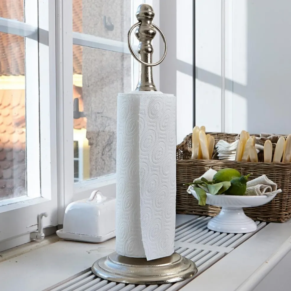 En aluminium pur Ce dérouleur de cuisine séduit par sa forme élégante et sa finition antique argentée de grande qualité. Il est fabriqué en aluminium pur et surmonté d’un charmant anneau pratique.