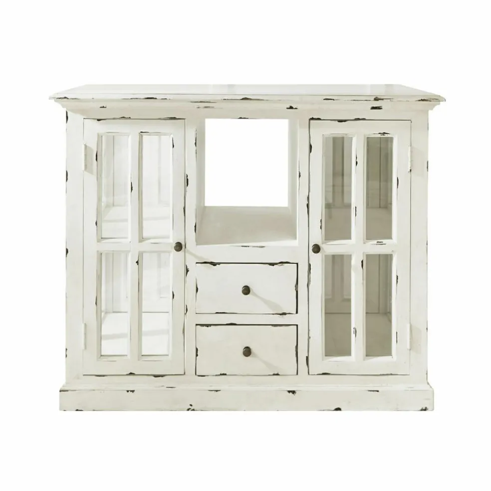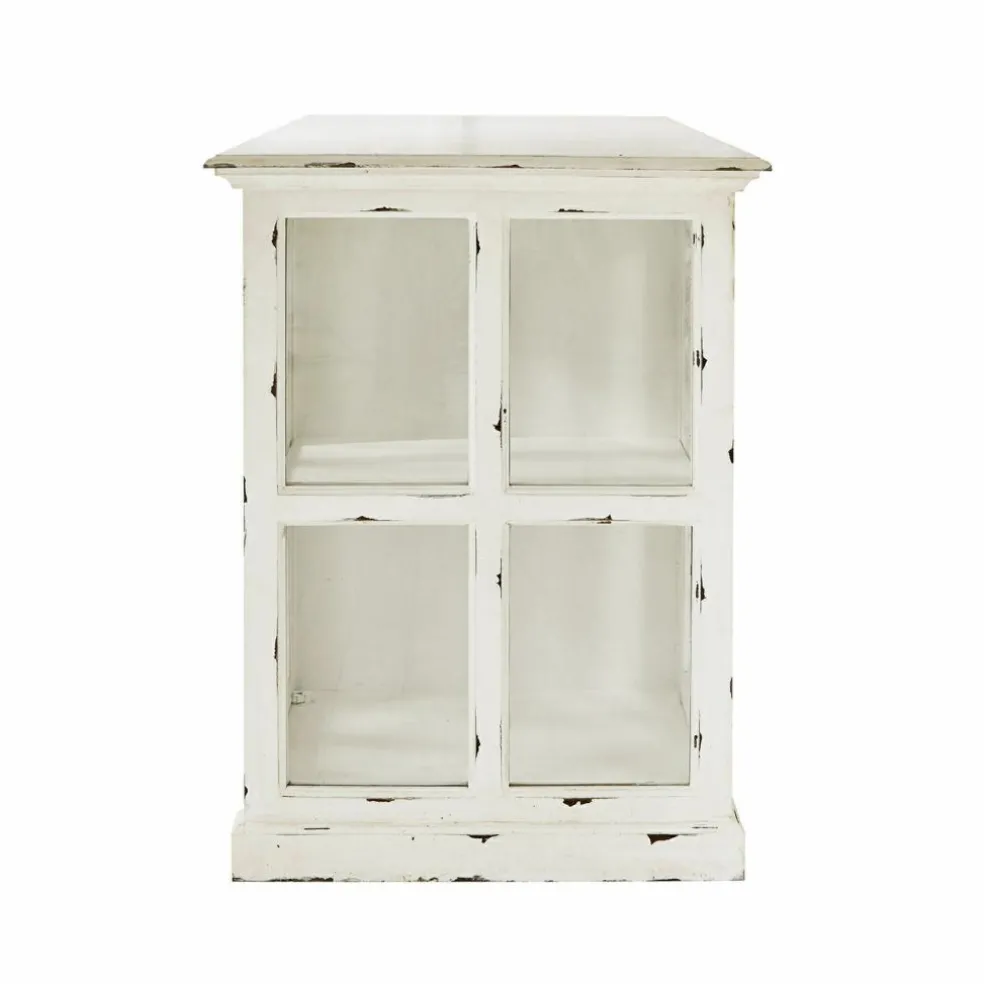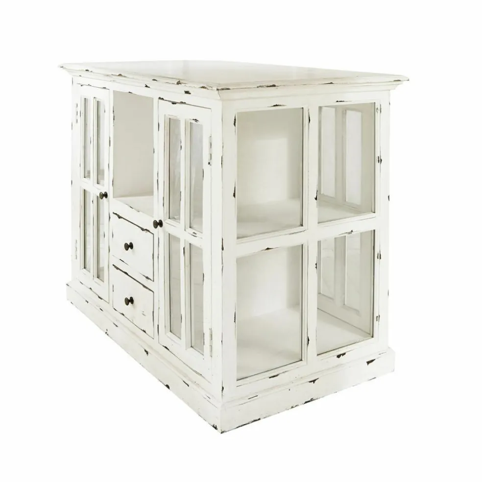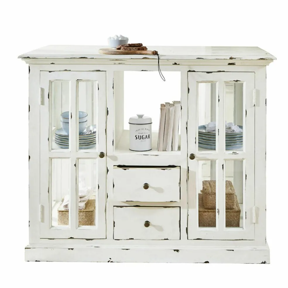La vue de ce superbe meuble nous rappelle la bonne odeur du pain frais et des plats mijotés, accompagnée de l’arôme puissant des herbes provençales. Un délicieux mélange de parfums que l’on retrouve notamment dans les cuisines au style maison de campagne. Et cette desserte de cuisine joue un rôle non négligeable dans la réussite de vos petits plats car elle met son très grand plateau à disposition comme surface de travail et de rangement supplémentaire, tandis que la vaisselle et autres ustensiles de cuisine se tiennent prêts à être utilisés derrière les portes vitrées. La desserte de cuisine allie ces nombreux aspects pratiques avec un magnifique look nostalgique, qui ne manquera pas de contribuer à une atmosphère particulièrement détendue dans la pièce. En plus des portes à croisillons et des tiroirs avec des poignées en fonte, les authentiques traces d’usure confèrent à cette desserte de cuisine un charme unique. Particulièrement pratiques, les portes et tiroirs des deux côtés assurent d’avoir vraiment beaucoup d’espace de rangement. Les parties vitrées, quant à elles, vous permettent de voir parfaitement au travers et d’avoir ainsi une bonne vue d’ensemble de tous les ustensiles. Enfin, la qualité n’est pas en reste car cette desserte de cuisine a été fabriquée en bois de manguier selon les meilleures méthodes artisanales.