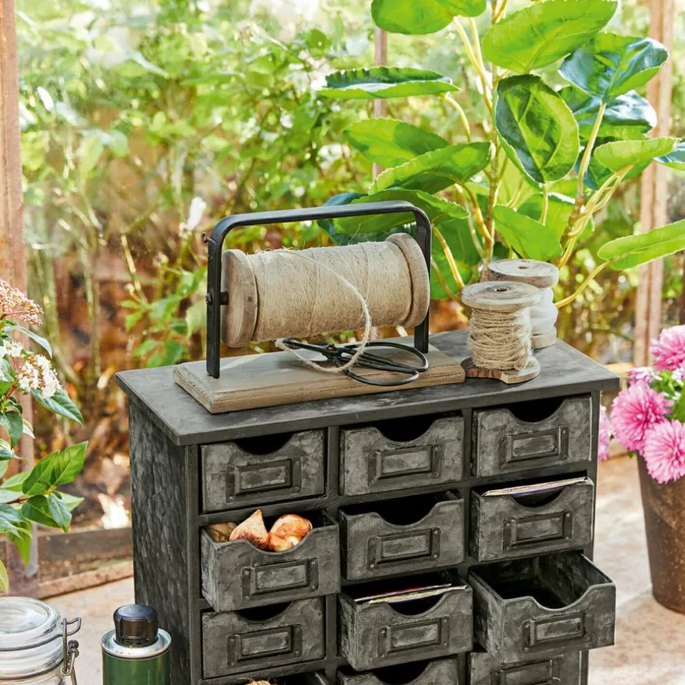 Ce charmant dévidoir à ficelle rappelle avec authenticité le bon vieux temps. Cet objet nostalgique sera parfait pour bricoler ou sur votre table de couture. Il se compose d’un support droit en métal fermement fixé sur un plateau en bois de sapin. D’adorables petits oiseaux sur les côtés rehaussent ce charmant dévidoir et lui apportent un petit quelque chose en plus ! Une très longue ficelle en lin est incluse. Cet objet aussi beau que pratique vous sera très utile pour faire des colis et des paquets cadeaux ou pour nouer des herbes aromatiques. Il s’harmonise parfaitement avec un intérieur shabby chic grâce à son look vintage.