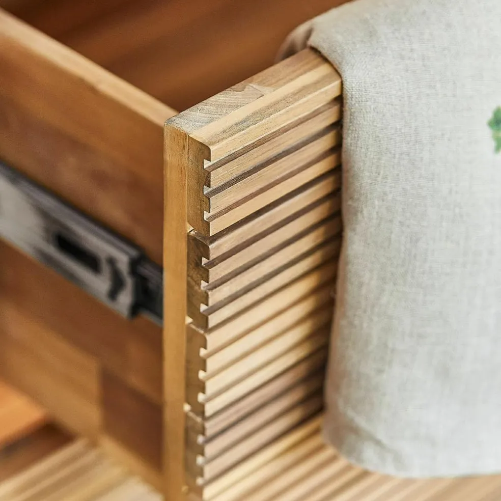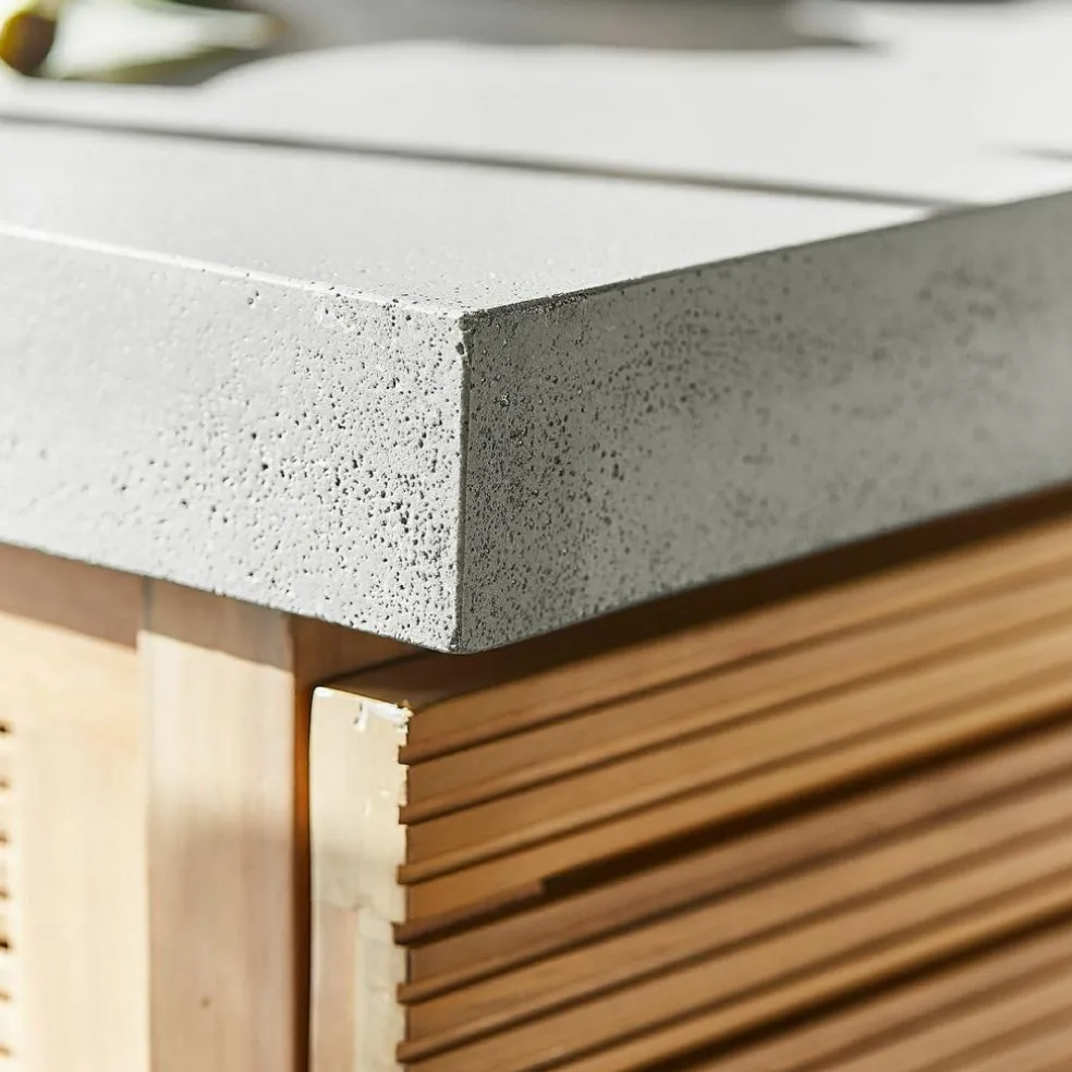 Avec cet élément de cuisine d’extérieur, transformez votre terrasse ou votre jardin en une cuisine élégante et fonctionnelle en plein air. Le bois d’acacia séduit par sa couleur intense et naturelle et sa structure originale en lamelles, qui confère aux meubles un aspect captivant et contemporain. Le dessus en béton constitue non seulement une surface idéale pour les barbecues ou la préparation des repas, mais il apporte également au meuble une allure moderne et industrielle. Derrière les portes et dans les trois grands tiroirs se cache un espace de rangement généreux qui promet suffisamment de place pour les accessoires de barbecue, les ustensiles de cuisine ou même les provisions. Avec cet élément de cuisine, vous ajoutez un peu de nature et de fonctionnalité à l’extérieur.
