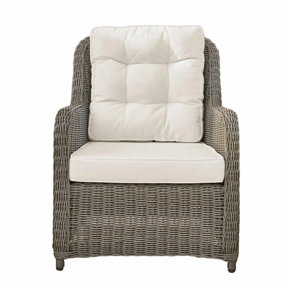Un ensemble parfaitement assorti. Pour des moments particulièrement agréables et détendus chez soi. Rotin synthétique solide, coussins au garnissage épais rembourrés avec housses lavables. Pourquoi ne pas vous offrir ce fauteuil luxueux livré avec son pouf parfaitement assorti, promesse de belles heures de détente ? L’ensemble en rotin synthétique à l’aspect très naturel et tressé sur un bâti solide en aluminium affiche un look classique et intemporel. D’agréables accoudoirs ainsi que des coussins au garnissage particulièrement confortable et revêtus de housses faciles d’entretien en polyester en feront vite votre nouvel endroit préféré. Les coussins sont bien entendu tous inclus. Le généreux pouf assorti est idéal pour relever ses jambes. Il pourra aussi servir de siège supplémentaire ou de support, notamment pour un plateau ou des livres. Cet ensemble de qualité est très solide et résiste au temps : vous en profiterez longtemps. Un meuble parfait pour lire ou passer du bon temps entouré de vos amis. Un merveilleux meuble cocooning pour le salon, la véranda ou sous un espace extérieur couvert. Ce duo de charme sera particulièrement beau dans un environnement de type maison de campagne.