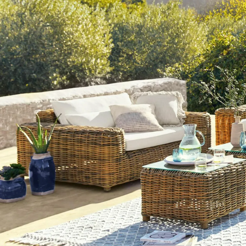 Séduisant et de grande qualité, ce joli modèle est bien entendu résistant aux intempéries. Il possède une structure en acier, un tressage fantaisie en polyrotin, des pieds en bois d’acacia et des coussins confortables recouverts de polyester résistant aux intempéries. Le fauteuil possède un coussin d’assise, un coussin de dossier et un coussin décoratif oval. Tout ce que vous avez à faire est de vous installer dedans et de profiter de l’été dans votre nouvel endroit préféré ! Ce séduisant fauteuil embellira votre jardin ou votre terrasse. Installez-vous confortablement avec une boisson fraîche et profitez des rayons du soleil, comme si vous étiez en vacances !
