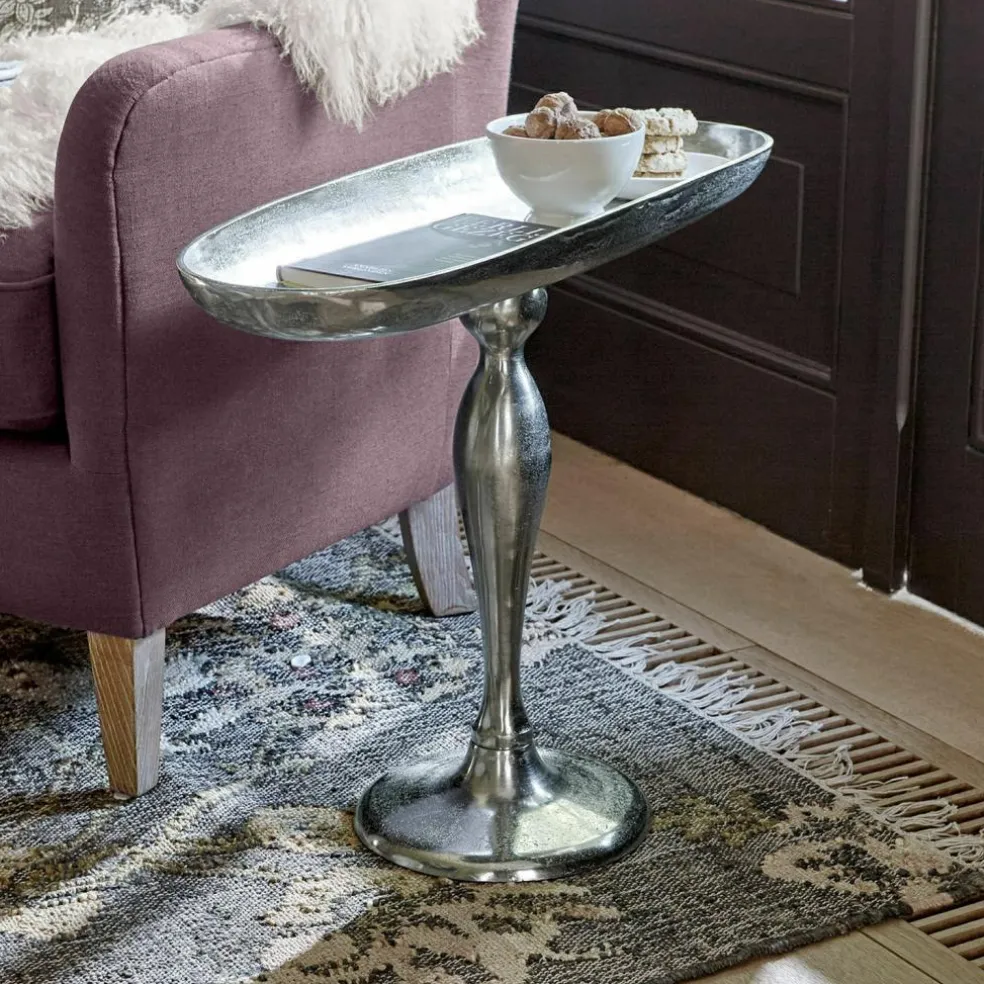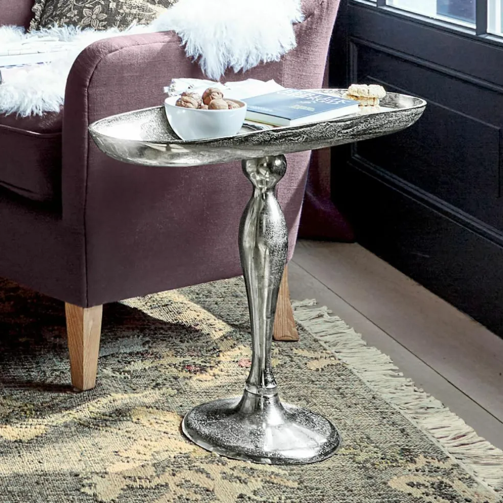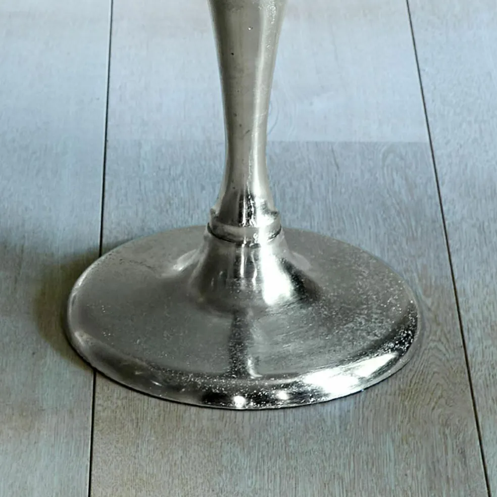 Laissez-vous enchanter par la beauté de ce guéridon coulé à la main. Chaque table est confectionnée en fonte d’aluminium de qualité et brille de manière unique grâce à sa finition argentée répartie avec grand soin. L’élégante forme courbée du guéridon rappelle de superbes sculptures et confère à chaque intérieur une touche de luxe. Le léger chatoiement de la surface capture la lumière et crée une ambiance chaleureuse et accueillante. Parfait pour déposer vos plus beaux objets de décoration ou simplement comme bel objet à côté du canapé : ce guéridon est un accessoire digne des plus beaux habitats. Profitez de la symbiose parfaite entre artisanat et design de cette table dont vous vous servirez selon les envies.