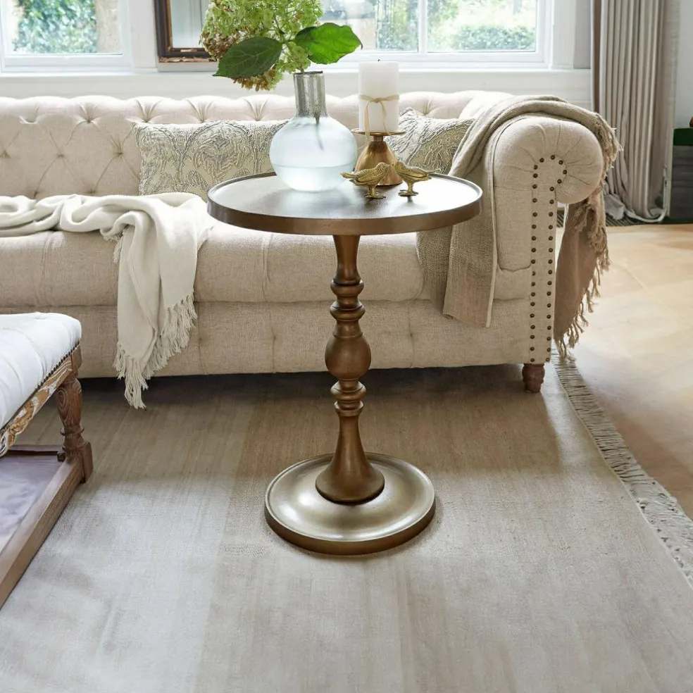 Ce guéridon est bien plus qu’un meuble pratique , il apportera une belle élégance toute particulière à chaque pièce. Confectionné en fonte d’aluminium massive, il se distingue par sa conception solide qui s’accompagne en même temps d’une légèreté visuelle. La finition laiton vieilli prête à cette table un style chaleureux et accueillant et met parfaitement en valeur les fines structures de la surface. Sa forme harmonieuse, composée d’un grand plateau de table rond avec un bord rehaussé et d’un superbe pied, lui assure une esthétique équilibrée qui fera l’unanimité dans les pièces aussi bien modernes que classiques. Comme surface de rangement élégante près du canapé ou comme touche décorative dans l’entrée, cette table d’appoint est le choix parfait pour tous ceux qui attachent de l’importance au design et à la qualité.