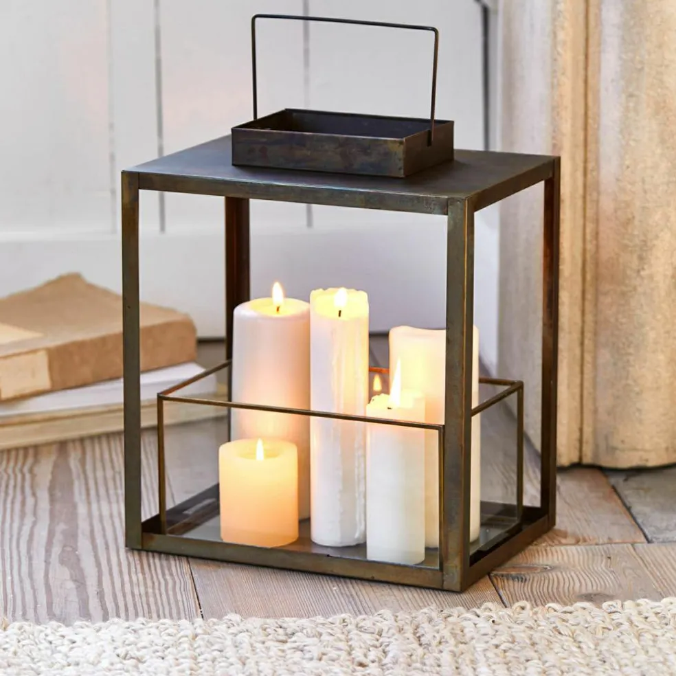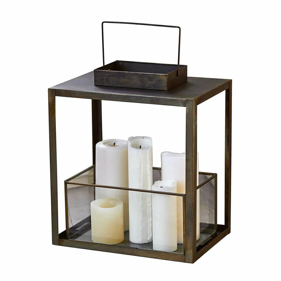 Un objet décoratif qui allie un style intemporel à des détails pratiques. La structure en métal arbore une finition vieillie qui donne une touche chaleureuse à chaque pièce. L’élément en verre amovible vous permet d’utiliser les lanternes de manière créative, aussi bien avec une bougie, une guirlande lumineuse ou des décorations de saison. Que ce soit à l’intérieur ou sur la terrasse, leurs lignes épurées s’intègrent harmonieusement dans les styles d’aménagement modernes ou classiques. Laissez-vous inspirer par ces pièces polyvalentes qui apporteront lumière et ambiance à votre intérieur.