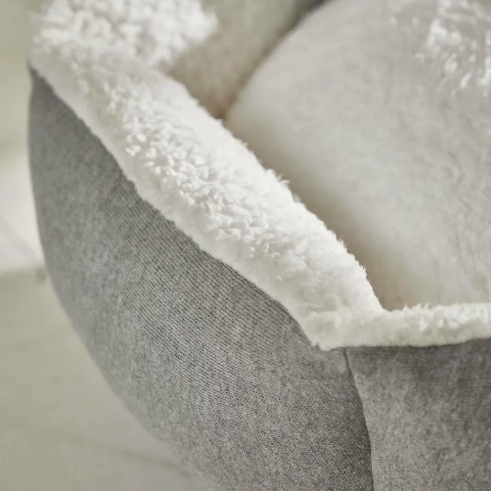 Ce lit pour animaux domestiques est fait pour des heures de calme, de somnolence et de détente profonde. La housse en coton est d »un gris moderne, à la fois discret et confortable. À l »intérieur, votre chéri(e) trouvera un rembourrage doux, de couleur crème, à la surface moelleuse, qui lui procurera immédiatement un sentiment de sécurité. La forme hexagonale avec un bord légèrement surélevé offre un soutien et un sentiment de protection, presque comme dans une petite grotte. Le dessous antidérapant empêche de glisser sur le carrelage ou le parquet, ce qui est parfait pour les quadrupèdes pleins de vie. Et parce que le propriétaire a également été pris en compte : Le lit se nettoie très facilement et reste donc frais longtemps. Un lieu de prédilection qui enrichit également l »aspect visuel de la maison.