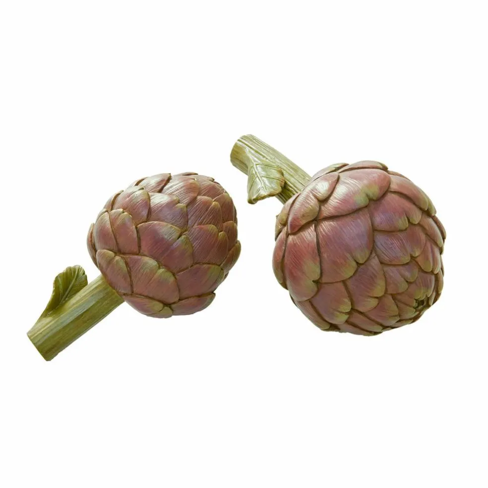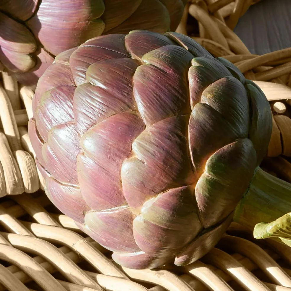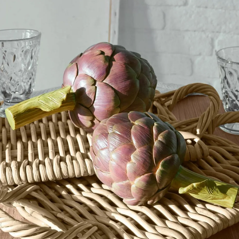 Un charme méditerranéen pour votre intérieur : on pourrait croire que ces artichauts décoratifs sont tout droit sortis du marché. Cette reproduction artistique séduit par la structure détaillée de ses feuilles et par les doux dégradés de couleurs, allant du violet profond au vert chaud. Chaque feuille a été soulignée par un travail de pinceau fin, ce qui donne aux artichauts un aspect extraordinairement vivant. Confectionné en polyrésine, l’ensemble est agréable au toucher et d’une beauté durable. Que ce soit pour attirer l’attention sur un plateau décoratif, en combinaison avec d’autres matériaux naturels ou pour apporter une touche de charme à une table festive, cet élément décoratif élégant apportera une touche d’ambiance méridionale à votre intérieur.