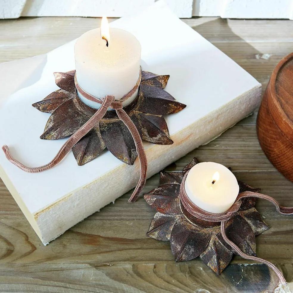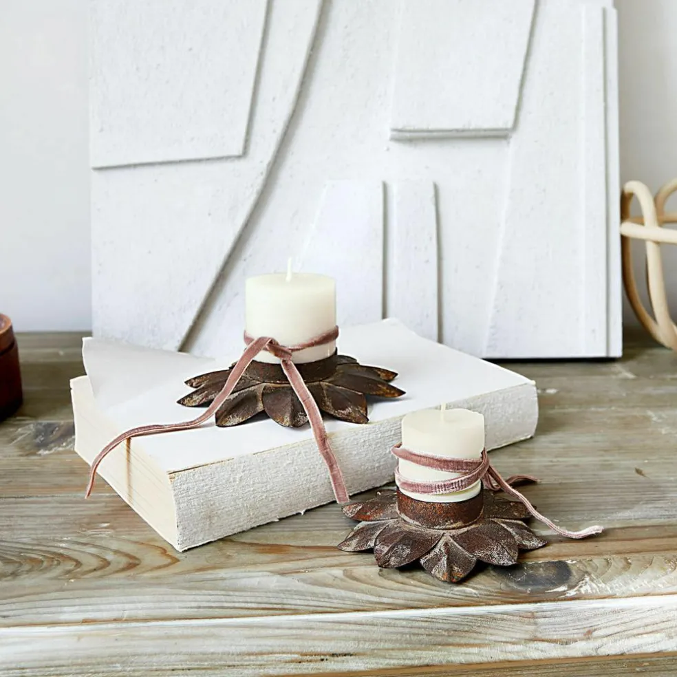 Ce lot de bougeoirs en métal solide confère une touche de charme rustique à chaque pièce. Les deux bougeoirs en forme de fleurs stylisées et ornés d’une finition rouille authentique se distinguent par leur aspect de caractère, rappelant les objets anciens. Chaque bougeoir arbore une patine unique qui vient souligner le style industriel et crée une atmosphère chaleureuse et accueillante. Sur la table, une étagère ou comme pièce phare de votre salon : ces bougeoirs sont de véritables vedettes décoratives pour un effet des plus cocooning dans votre intérieur. Avec leur solide construction en métal et leur côté intemporel, ils font non seulement office d’accessoires pratiques mais sont aussi des pièces phares s’intégrant avec facilité dans un grand nombre de styles décoratifs.