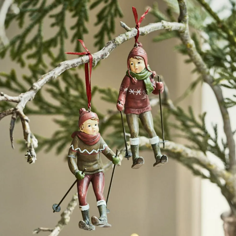D’adorables petits skieurs très détaillés en résine synthétique ! Peints à la main. Style vintage. Ces deux figurines à suspendre sont tout simplement à croquer ! Celles-ci sont dotées de liens pour que vous n’ayez plus qu’à les suspendre au sapin. Ces joyeux personnages rappellent les Noëls d’antan. Tous les détails sont particulièrement réalistes, des visages aux vêtements en passant par les skis. Rien qu’en les regardant, l’on ne peut s’empêcher de penser aux pistes enneigées : une déco indispensable pour Noël et tout au long de l’hiver !