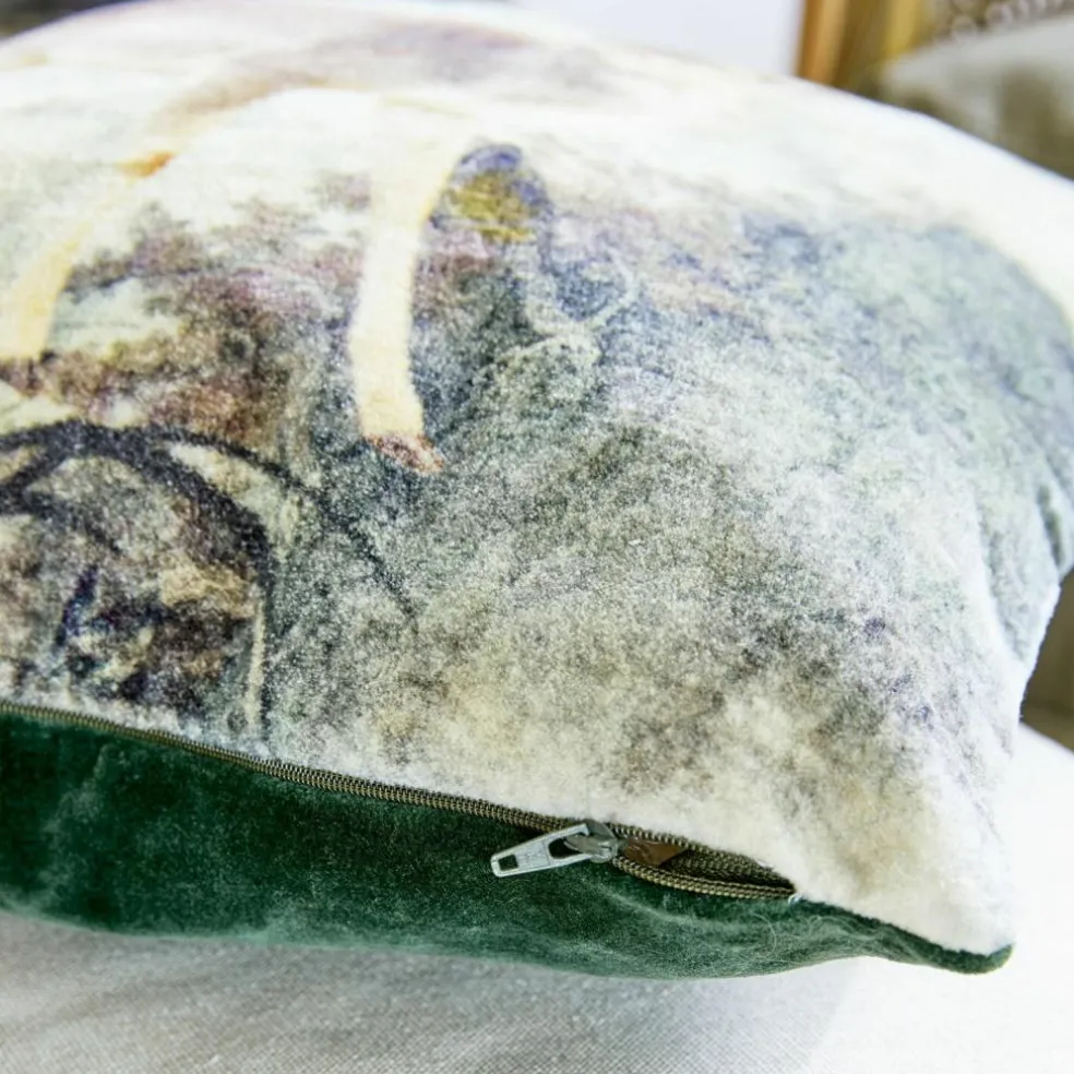 Style chalet très confort. Housse en tissu effet velours très doux. Une superbe combinaison de couleurs et de motifs naturels. Créez une ambiance ultra accueillante digne d’un chalet chez vous et profitez de l’incroyable douceur de ces deux belles housses de coussin. L’une est ornée d’un très joli motif de cerf, l’autre est unie. Elles sont l’accessoire idéal sur le canapé ou au lit pour y passer de bons moments très confortablement installés. Vous aurez l’impression d’être dans un beau chalet naturel, autour d’un feu et avec plein de bois qui vous entoure. Ces jolis accessoires de grande qualité confèrent une belle ambiance à tout type de pièce avec leur aspect très harmonieux.