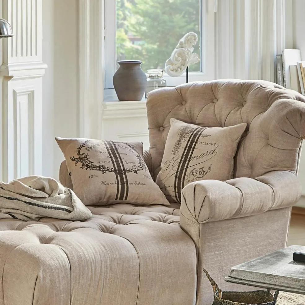 En pur lin haut de gamme. Munies de trois boutons décoratifs en nacre. Jolis textes décoratifs au style rétro. Très jolies ! Ces deux ravissantes housses de coussins agrémenteront votre intérieur d’un petit air vintage. Les écritures au style ancien artistiquement dessinées, qui nous rappellent une époque révolue, raviront tous les amateurs du style shabby chic. Elles s’harmoniseront aussi parfaitement avec le style campagne. De superbes housses au style chaleureux et très chic.