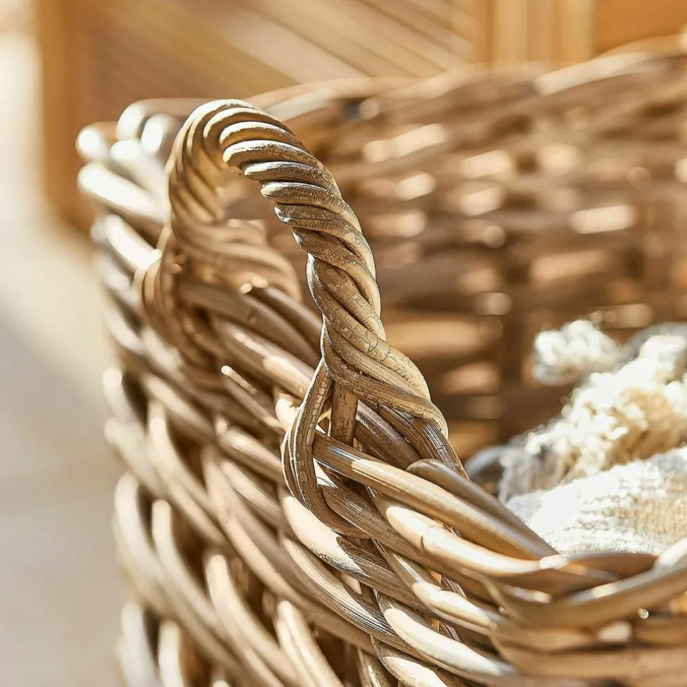 Cet ensemble de deux paniers en rotin tressé à la main allie beauté intemporelle et fonctionnalité pratique. La couleur naturelle et claire du rotin dégage une impression de chaleur et de convivialité, tandis que les dimensions généreuses des paniers offrent un grand espace de rangement. Le tressage esthétique confère à chaque panier une structure unique qui s’intègre harmonieusement dans tous les intérieurs. Que ce soit comme solution de rangement dans le salon, la chambre à coucher ou comme élément décoratif, ce lot de paniers apporte une élégance naturelle à chaque pièce.