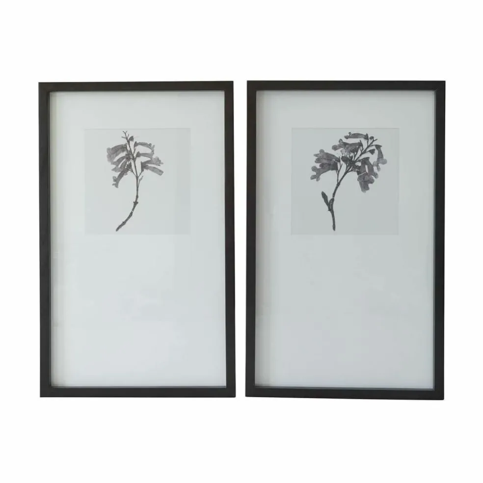 Deux délicates tiges de fleurs, capturées dans un noir doux sur un blanc pur… Cet ensemble de tableaux dégage un silence presque poétique. Les motifs botaniques semblent tirés d’un vieil herbier. Chaque détail est finement travaillé et pourtant délibérément épuré. Le large passe-partout permet aux dessins de respirer, tandis que les cadres noirs et fins complètent la composition avec art. Que ce soit au-dessus de la commode, dans l’entrée ou comme point de mire apaisant dans la chambre à coucher, ce duo fait entrer la beauté de la nature dans votre intérieur avec une retenue moderne.
