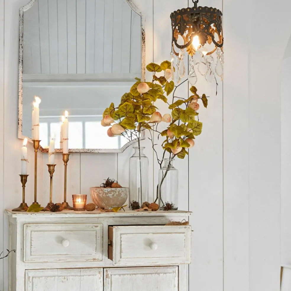 Ces ravissantes branches de poirier décoratives, très réalistes et portant de belles poires, évoquent un jardin de campagne romantique. Vous en profiterez des années durant et vous pourrez admirer ces beaux objets naturels en toute saison. Les deux longues branches décoratives sont en matière synthétique et les poires très réalistes en mousse artificielle. Disposées dans de beaux vases ou des bouteilles décoratives, elles dégageront tout leur charme sur un buffet ou comme décoration de table. Cette charmante parure, qui évoque des moments idylliques dans un jardin paysan, s’harmonise à la perfection avec un intérieur de style maison de campagne.