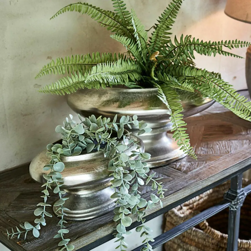Fonte d’aluminium ouvragée de qualité Un lot parfaitement assorti ! Un duo en deux tailles. La base idéale pour de superbes bouquets, des fleurs solitaires, des herbes ou des branches. Que vous y placiez des fleurs ou de belles fleurs synthétiques, ces deux ravissants vases sauront parfaitement les mettre en valeur. Ces accessoires intemporels formeront sans conteste une superbe décoration de table ou sublimeront le rebord de votre fenêtre. Le relief légèrement rêche et volontairement irrégulier de la surface apporte du caractère à ce charmant duo. Présentés ensemble ou seuls, ces vases à l’allure aussi luxueuse qu’harmonieuse seront d’un bel effet dans n’importe quel intérieur et amèneront une jolie touche de nature chez vous en toute saison.