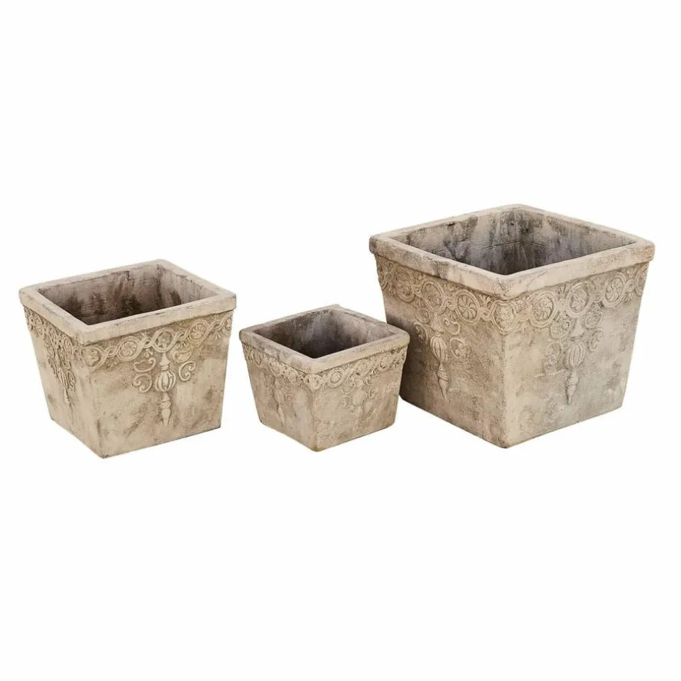 Ce très beau trio apporte une touche méridionale à votre jardin, votre balcon ou votre véranda. À l’intérieur également, les trois cache-pots trouveront une place de choix. Ils arborent de superbes ornements et sont confectionnés en argile aspect terre cuite. Ils sont également dotés d’un trou d’évacuation pour éviter toute accumulation d’eau. Les trois cache-pots en tailles différentes accueillent fleurs, plantes, herbes et vous permettent de laisser libre cours à vos idées créatives. Profitez d’une belle touche méditerranéenne dans votre petit coin de verdure.