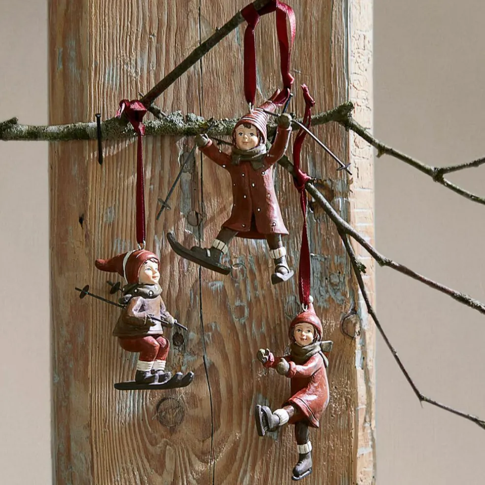 Célébrez Noël comme au bon vieux temps avec ces trois figurines empreintes de nostalgie et réalisées avec l’amour du détail. Elles sont fabriquées en résine synthétique peinte à la main. Cet ensemble comprend trois modèles différents qui représentent des enfants heureux chaussés de patins à glace et de skis , on a presque envie de les rejoindre. Chaque détail est très finement travaillé, pour créer une atmosphère merveilleuse durant les fêtes. Les rubans assortis sont déjà attachés, ce qui vous permet de commencer à décorer sans tarder. Sur le sapin de Noël ou dans des branchages d’hiver, ils évoqueront une ambiance festive cosy, comme au temps de l’enfance.