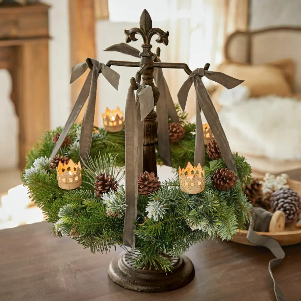 Aspect royal très séduisant. Style nostalgique, en métal avec une finition vieillie. Polyvalent : agrémente une couronne de l’Avent ou un pot de fleurs. Ces photophores en forme de couronnes s’intègreront parfaitement dans un style shabby-chic. Ils produiront un effet des plus romantiques avec leur lueur délicate et leur style séduisant. Vous pourrez par exemple les placer dans une coupelle remplie de sable ou dans un verre pour un effet très créatif. Ces photophores embelliront chaque pièce de la maison : profitez du spectacle qu’ils vous offrent tout au long de l’année !