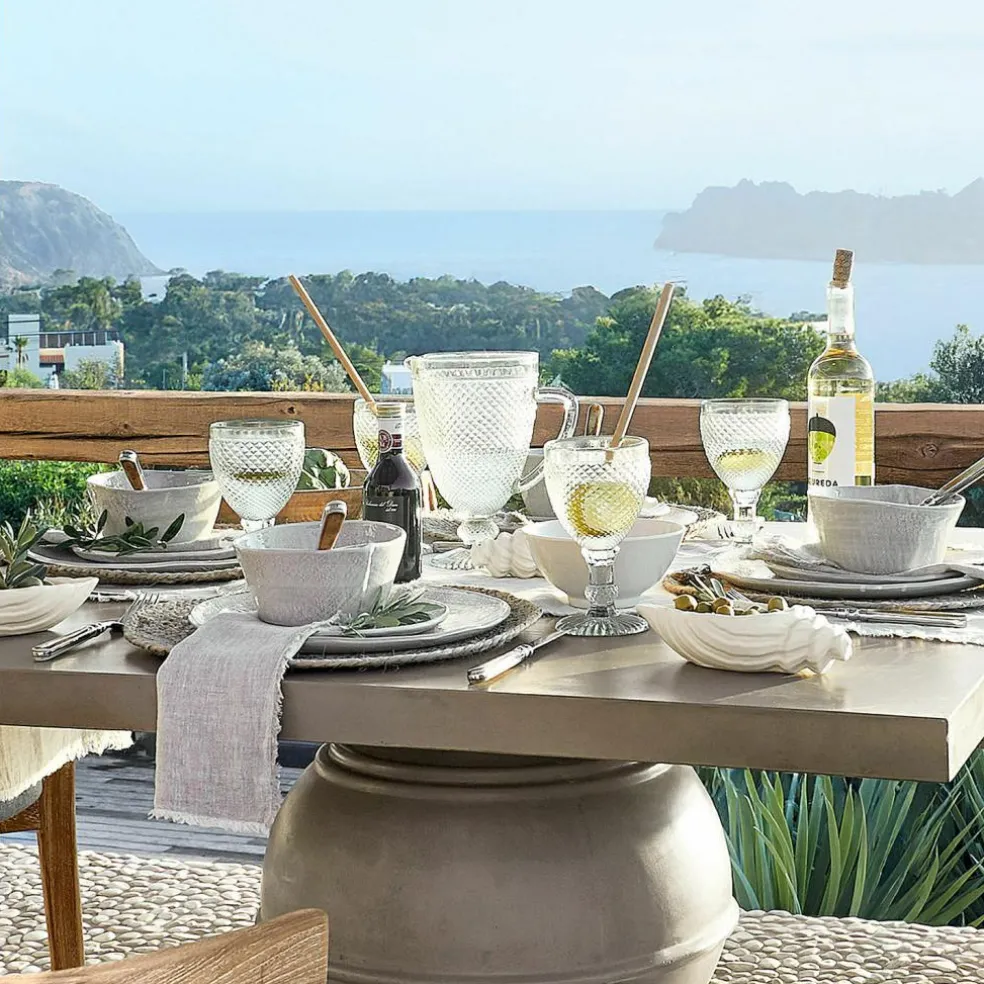Ce lot de quatre verres associe des lignes classiques à une texture raffinée. Leur motif en diamant finement travaillé capte la lumière et diffuse de subtils reflets étincelants sur la table. Avec leur coupe généreuse, ils s’adaptent à toutes les boissons, qu’il s’agisse d’eau pétillante, de jus fruité ou de vin. Leur pied stable assure une prise en main confortable et un parfait équilibre, tandis que leurs formes épurées leur confèrent une élégance intemporelle.
