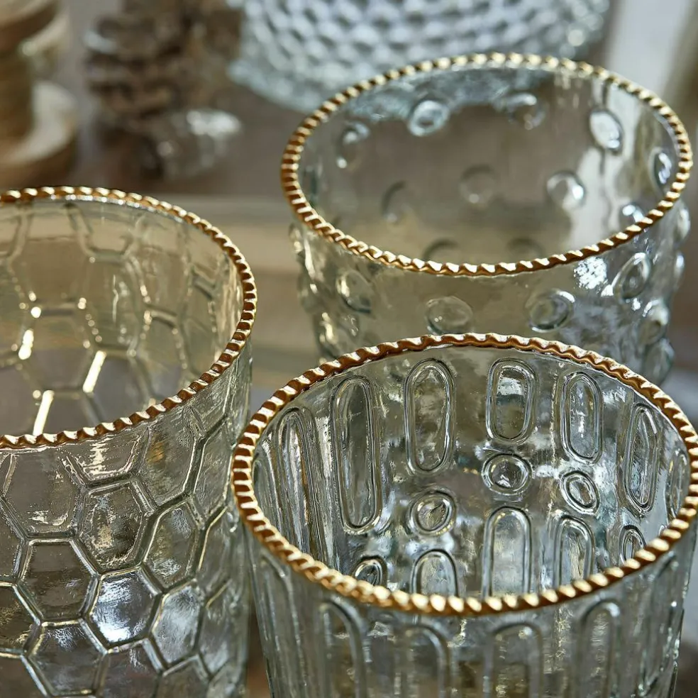 Ce séduisant lot séduira tous les amoureux du style shabby-chic avec leur charme vintage des plus authentiques. Ces cinq photophores brillent d’une élégances romantique, comme s’il s’agissait d’un héritage ou d’un coup de coeur déniché dans un marché aux puces. Chaque verre a son propre style avec une taille différente et un bord doré. Placez-y simplement des bougies chauffe-plat à l’intérieur et profitez du spectacle séduisant et de la chaleur des bougies. Ils diffusent tout leur éclat en lot, mais savent aussi se mettre en scène en solo avec des petites fleurs placés à l’intérieur, à l’instar de petits vases. Peu importe le style d’intérieur, ce lot apportera à votre maison un charme nostalgique.