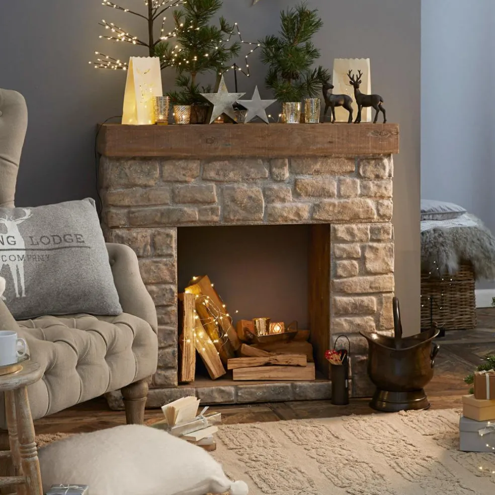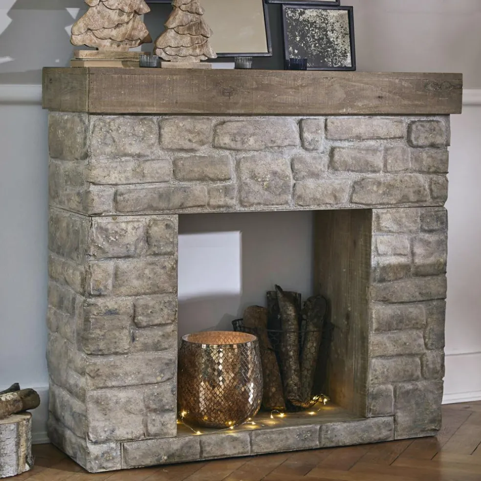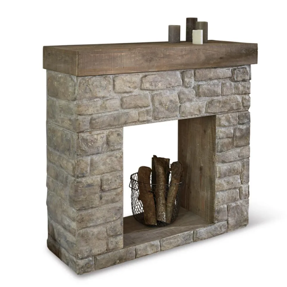 Créez une ambiance cosy à la maison ! Mélange de matières aspect maçonnerie rustique et bois de pin revalorisé. Son effet « mur de pierre » à l’ancienne en métal est en parfaite harmonie avec la superbe tablette en bois de pin revalorisé. Une surface rustique, un intérieur accueillant : voilà comment on pourrait qualifier de façon concise les innombrables maisons en pierre naturelle que l’on rencontre principalement dans les régions rurales. Tantôt rustiques, tantôt plus raffinées, elles ont toujours un tel pouvoir d’attraction que l’on aimerait y emménager sur-le-champ. Et si vous avez la chance de pouvoir pénétrer dans l’une de ces maisons, vous y découvrirez presque toujours, dans l’intérieur typique d’une maison de campagne, un accessoire réalisé dans le style de la maison : une cheminée en pierres naturelles surmontée d’une poutre en bois massif. Avec son aspect incomparable rappelant la pierre naturelle, ce manteau de cheminée s’inspire des modèles rustiques, poutre en bois comprise ! Mais celle que vous voyez ici est en bois de pin revalorisé, un matériau auquel les années d’une vie passée ont conféré cet aspect prononcé qui s’intégrera parfaitement dans un intérieur de maison de campagne harmonieux. Ce manteau de cheminée ne devra pas forcément trouver sa place dans une maison à la campagne, puisqu’il pourra parfaitement transformer un appartement urbain en havre de paix. Vous pourrez le décorer avec des bougies et d’autres accessoires romantiques pour profiter de l’ambiance cosy qu’il créera dans votre intérieur.