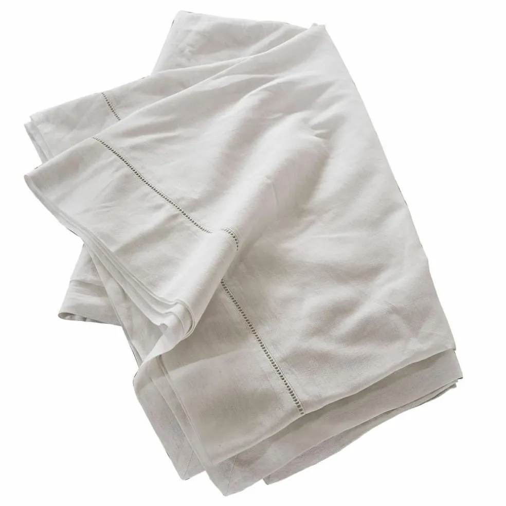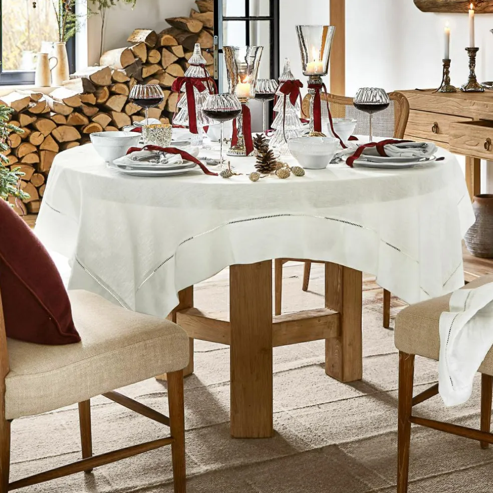 Apportez à votre table une touche d’intemporalité avec cette précieuse nappe en lin et coton. Son tissu naturel allie la solidité rustique du lin et la grande douceur du coton pour un toucher unique et si agréable. Le motif ajouré qui borde la nappe est non seulement magnifique, mais également le signe d’un artisanat des plus raffinés qui fera de chaque repas un moment d’exception. Au petit-déjeuner en famille, pour un dîner de fête ou un repas entre amis, cette nappe est toujours à sa place! Dressez-la d’une vaisselle sobre pour une atmosphère rustique ou avec de la fine porcelaine. pour une belle touche de raffinement.