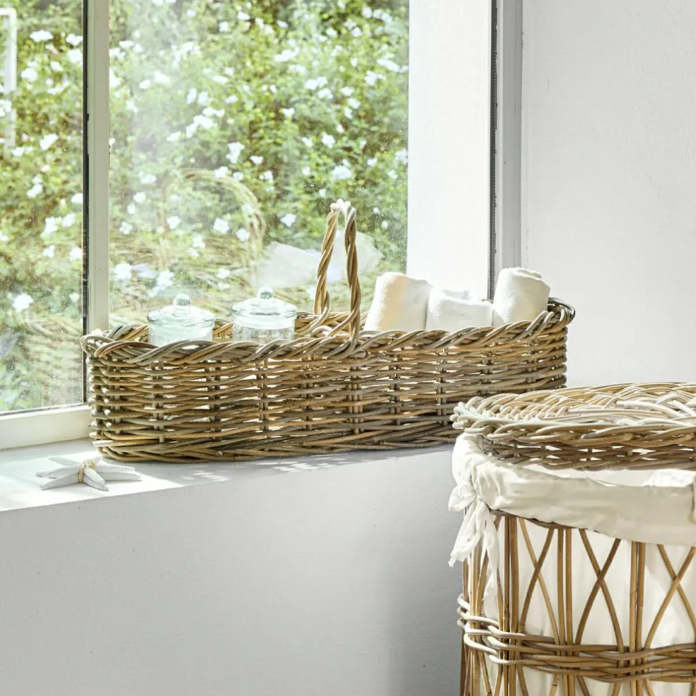 Cette belle commode joliment tressée est en pur rotin naturel et a été réalisé à la main. Son aspect élégant et tout en longueur vous offre de nombreuses possibilités d’utilisation polyvalente et créative. Grâce à ses deux compartiments séparés et sa poignée, il peut être utilisé pour présenter des couverts, des fleurs séchées, des décorations et bien d’autres choses encore. Ou disposez-y vos fruits et légumes pour profiter d’un effet à la fois décoratif et pratique. Laissez libre cours à votre imagination avec ce bel article qui vous permet d’ajouter facilement de belles touches champêtres qui ne manqueront pas de rehausser n’importe quelle pièce de la maison, notamment la cuisine ou le salon. Comme décoration de table ou élément de décoration sur une desserte, il contribue à une atmosphère chaleureuse et détendue.