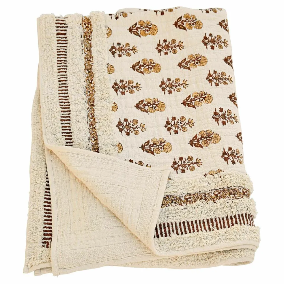 Plus qu’un simple accessoire pratique pour la maison, ce textile en coton au motif élaboré reprend les codes de l’artisanat avec un grand souci du détail. L’avant est orné de franges tuftées qui encadrent l’imprimé floral et lui confèrent une touche unique. L’envers présente une structure discrète avec des lignes en relief qui donnent au tissu une profondeur au toucher. Le mariage harmonieux du coton doux, du motif vivant et de la structure texturée fait de cet accessoire un véritable accroche-regard. Que ce soit sur le canapé, dans la chambre à coucher ou comme touche de style, ce textile apporte chaleur et personnalité à n’importe quelle pièce.