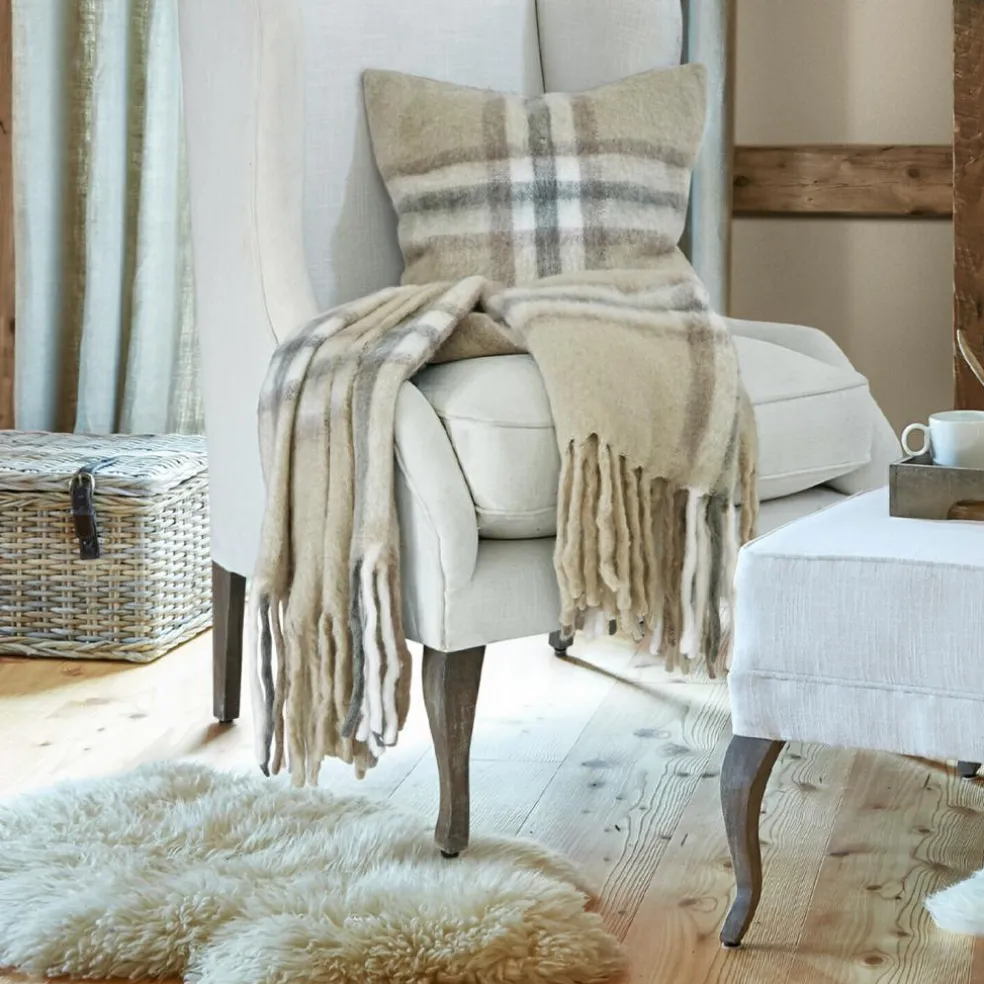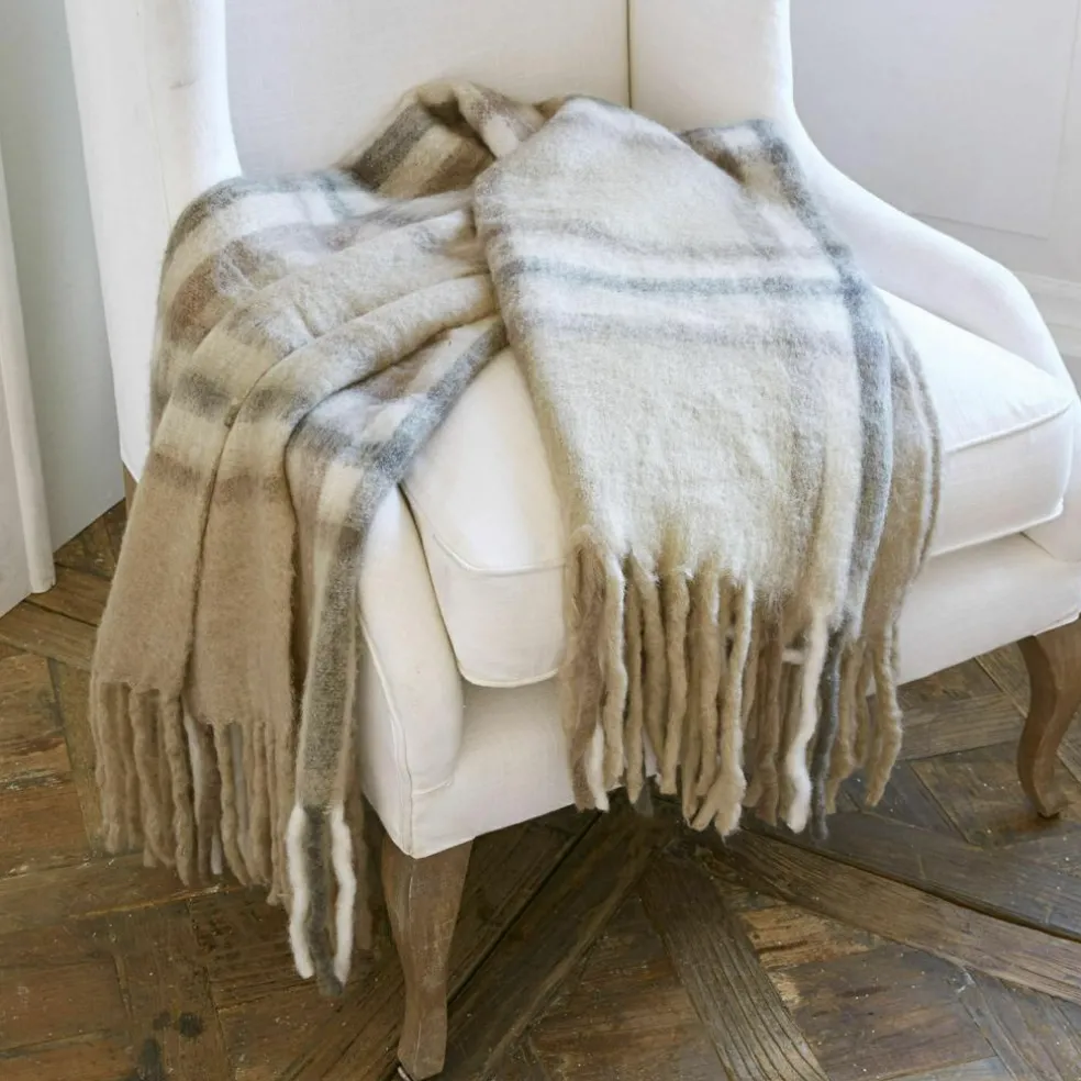 Un classique alliant confort et élégance. Le choix de coloris naturels apporte au motif à carreaux traditionnel style et élégance. Franges décoratives aux extrémités. Un accessoire polyvalent et très décoratif qui offre la dose parfaite entre élégance et confort dont vous rêvez. Ce plaid est certain d’attirer tous les regards avec son motif traditionnel à carreaux, sa palette de couleurs naturelles et ses franges décoratives aux extrémités. Sa laine mélangée de qualité est extrêmement douce, légère et agréable, ce qui confère au plaid un tomber très naturel et une chaleur très réconfortante. Enveloppez-vous dans ce merveilleux plaid, détendez-vous et profitez des bonnes choses de la vie – sur le canapé, dans un fauteuil de lecture ou encore sur le banc confortable dans le jardin.