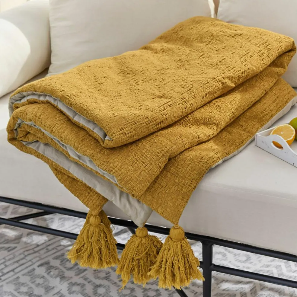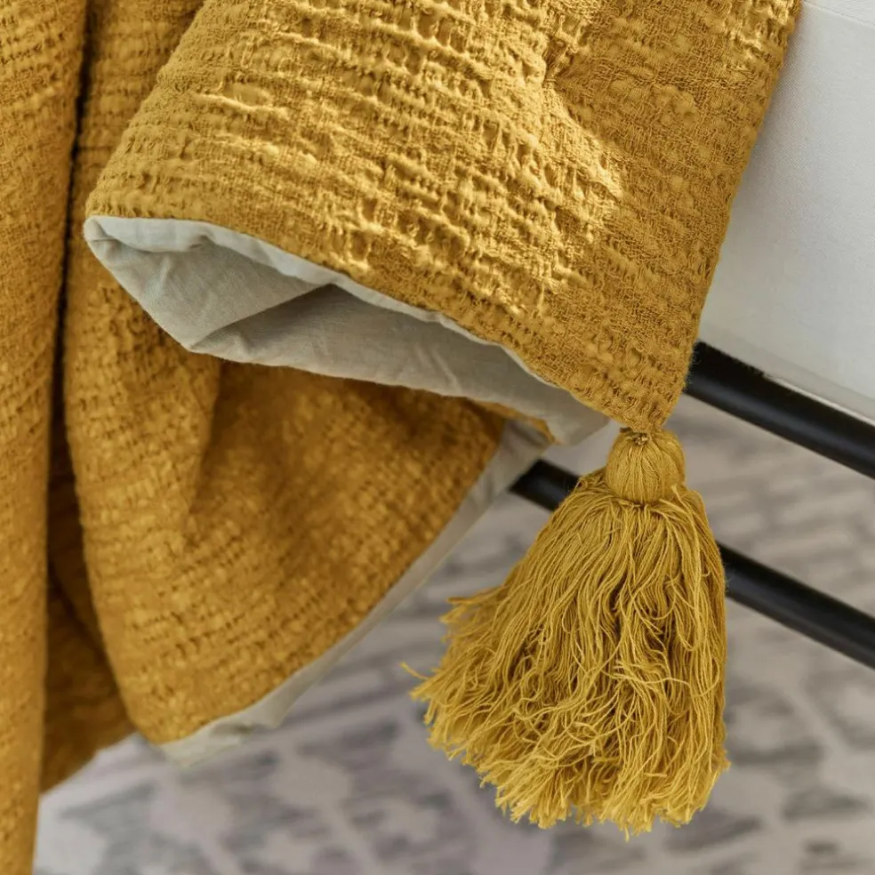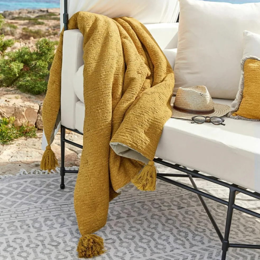 Très moelleux, avec une grande part de coton. Avec des pompons décoratifs et des pinces avec de petites franges. Coloris bonne humeur. Ce superbe plaid ne séduit pas uniquement par son esthétique, mais aussi par son toucher agréable : un accessoire idéal pour vos moments de détente. Sur le lit ou le canapé, sur la chaise longue du balcon ou du jardin, ce plaid est un merveilleux compagnon qui plus est ne manquera pas de distiller une charmante touche bohème chic. Lovez-vous contre son tissu léger et ne pensez plus à rien : la vie est belle ! Ce plaid de grande qualité sera aussi un accessoire de choix pour vos pique-niques !