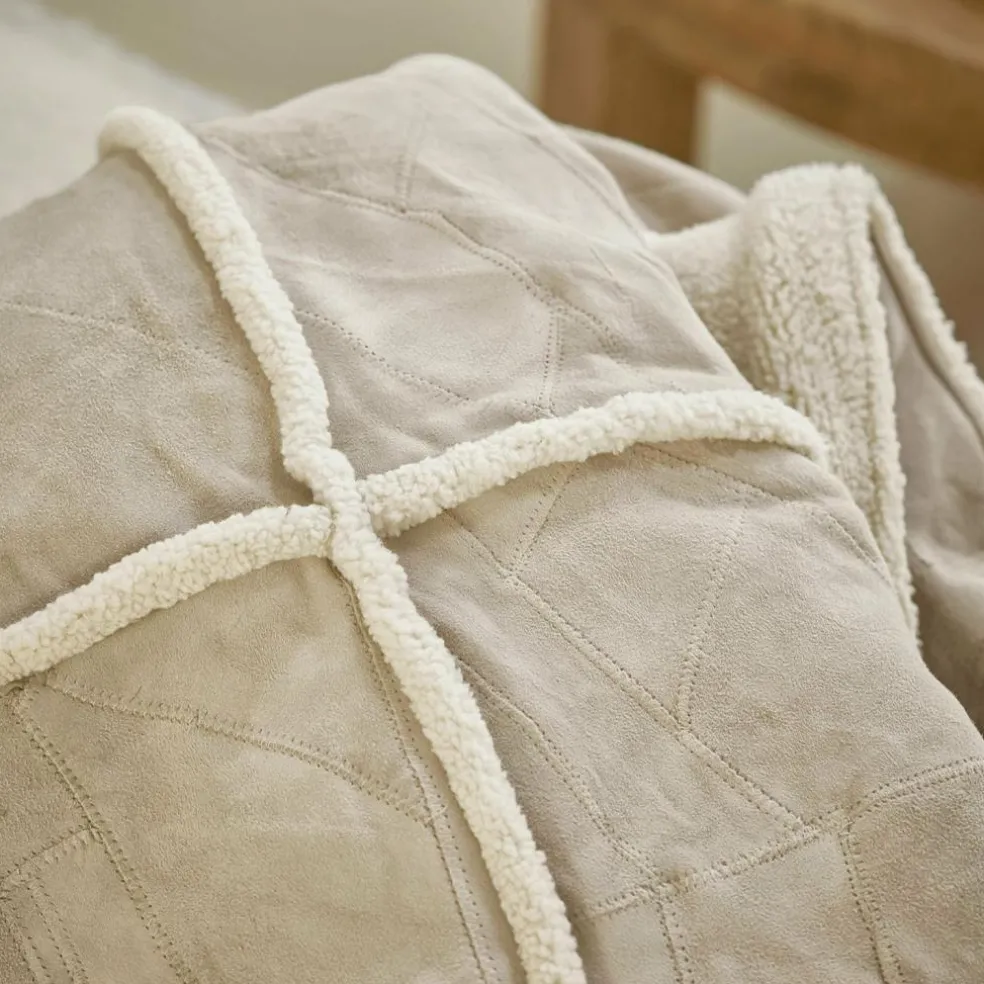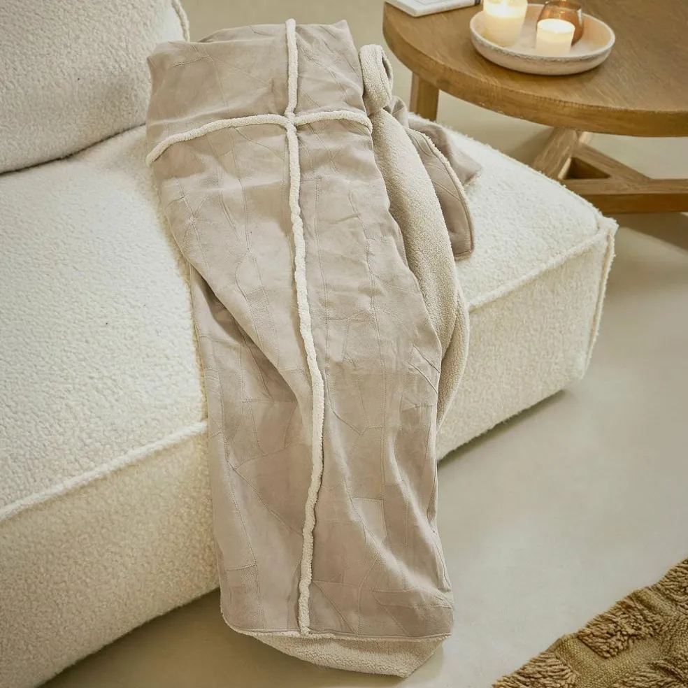 Un plaid au passé riche : ce patchwork artistique a été réalisé sur la face avant à partir de nombreuses pièces de cuir aux nuances naturelles délicates : chaque élément porte sa propre signature et confère au plaid son caractère unique. La surface naturelle du cuir est agréable au toucher et apporte de la chaleur à la maison. L’envers surprend par la douceur d’une fourrure peluche en coton, véritable caresse pour la peau. Cette alliance exceptionnelle fait de ce plaid non seulement un accessoire confortable pour les journées fraîches, mais aussi un accessoire d’intérieur stylé, plein de charme et de profondeur.