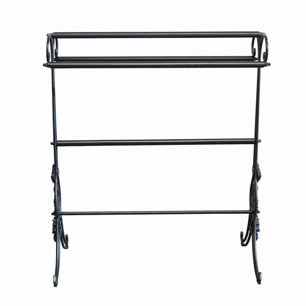 On pourrait croire que ce porte-serviettes provient d’une vielle maison de campagne classique: les ornements raffinés semblent avoir été forgés à la main et les barres en fer élégamment courbées racontent une époque où les objets du quotidien étaient encore des chefs-d’œuvre décoratifs. Le noir mat profond du métal met en valeur la structure détaillée et apporte une touche de nostalgie dans chaque salle de bains. Les serviettes peuvent être suspendues sur trois niveaux, avec suffisamment d’espace pour un séchage aéré. Pour former un contraste charmant dans un intérieur moderne ou en vue d’une intégration harmonieuse dans des pièces classiques, ce porte-serviettes n’est pas seulement pratique, il est aussi une véritable pièce maitresse.