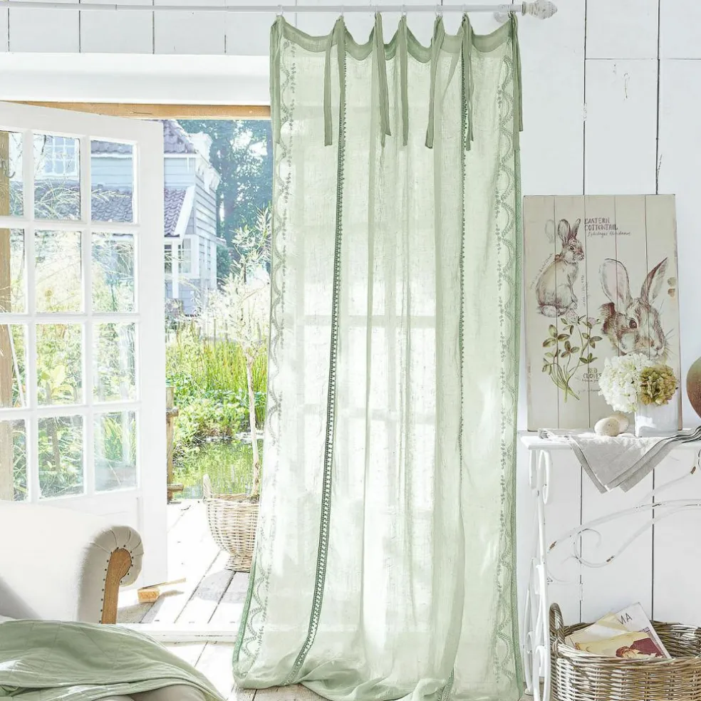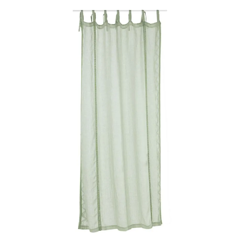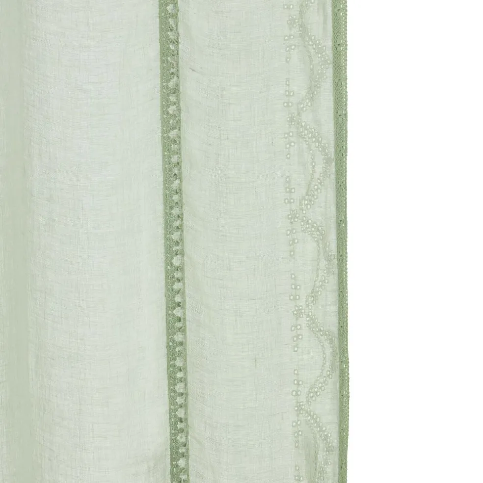 Ce ravissant rideau apporte une touche de romantisme et une impression de légèreté printanière. Il est composé d’un mélange léger de coton et lin. Une bordure en dentelle romantique lui confère un magnifique look vintage rappelant les temps anciens – tout simplement parfait dans un intérieur shabby chic. Les broderies ajourées et les différents motifs sont en parfaite harmonie. Ce joli rideau est idéal pour le bureau ou le salon car il protège des regards indiscrets tout en laissant passer la lumière. Le coloris doux rappelle les jeunes feuilles et fait entrer la nature chez vous. Grâce aux nouettes décoratives, l’attacher sera un jeu d’enfant et vous pourrez même ajuster la longueur à votre guise. Ce superbe accessoire viendra embellir n’importe quelle pièce.