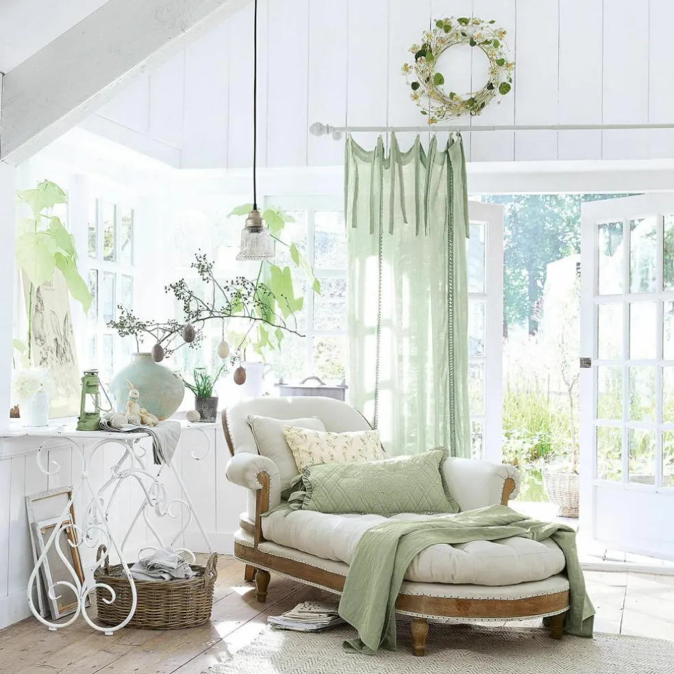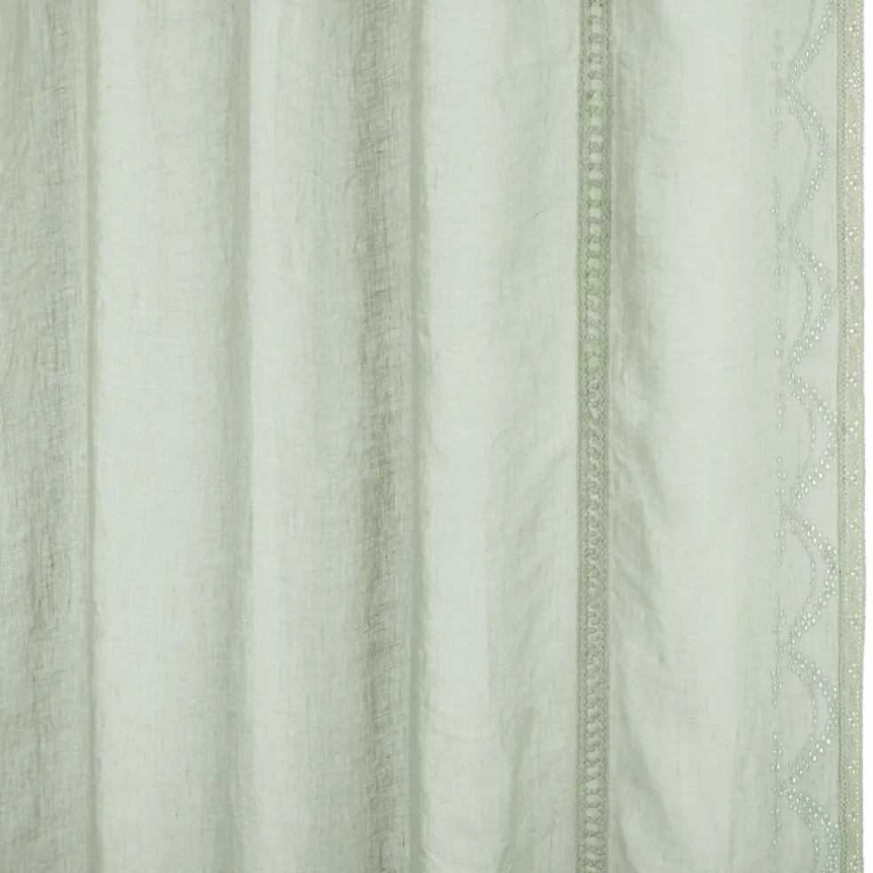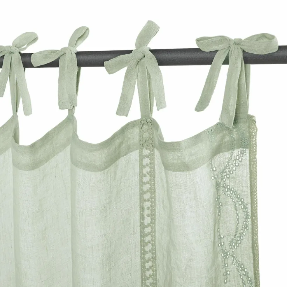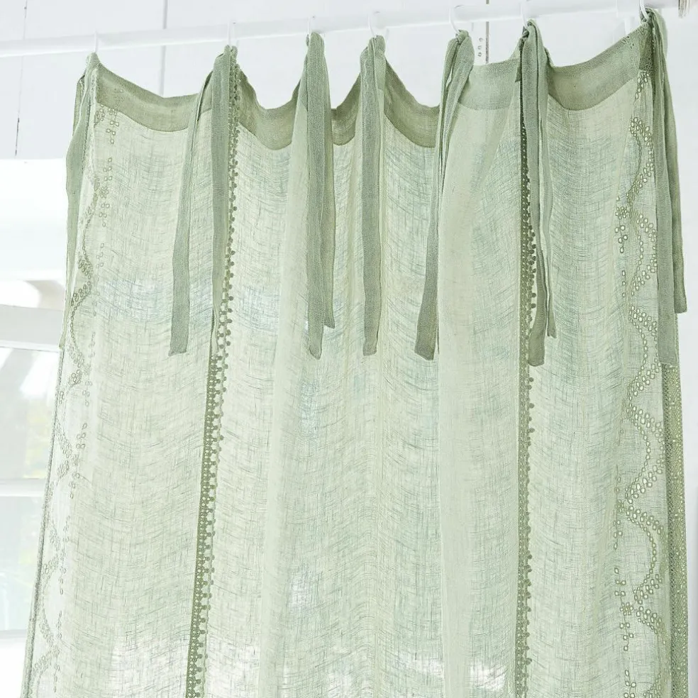 Ce ravissant rideau apporte une touche de romantisme et une impression de légèreté printanière. Il est composé d’un mélange léger de coton et lin. Une bordure en dentelle romantique lui confère un magnifique look vintage rappelant les temps anciens – tout simplement parfait dans un intérieur shabby chic. Les broderies ajourées et les différents motifs sont en parfaite harmonie. Ce joli rideau est idéal pour le bureau ou le salon car il protège des regards indiscrets tout en laissant passer la lumière. Le coloris doux rappelle les jeunes feuilles et fait entrer la nature chez vous. Grâce aux nouettes décoratives, l’attacher sera un jeu d’enfant et vous pourrez même ajuster la longueur à votre guise. Ce superbe accessoire viendra embellir n’importe quelle pièce.