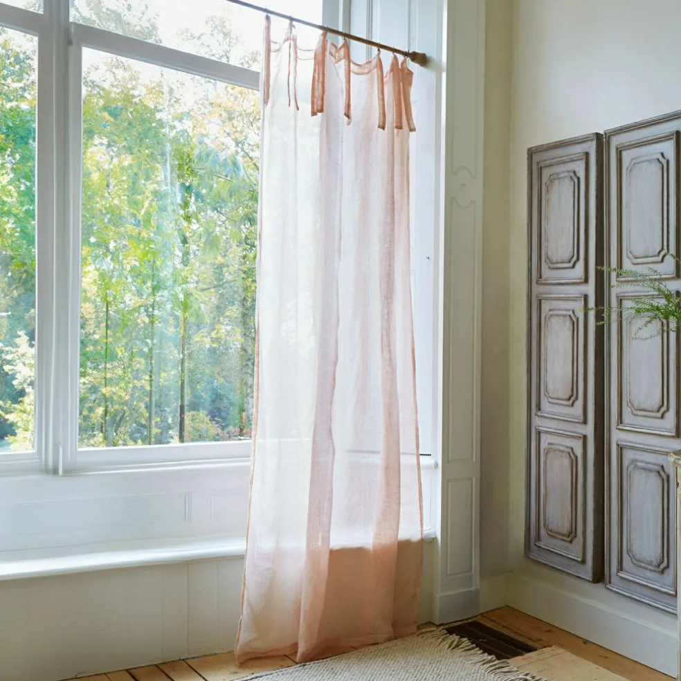 Offrez une touche de légèreté naturelle à vos pièces à vivre grâce à ce rideau en pur lin. La structure délicate du lin confère au tissu un toucher agréable et doux pour un effet aérien. Le coloris rose tendre et apaisant complète en toute harmonie différents types d’intérieurs. La texture légèrement transparente laisse délicatement passer la lumière du jour dans la pièce, tout en vous assurant de garder votre vie bien privée. Dans le salon, la salle à manger ou la chambre à coucher : ce rideau allie fonctionnalité et style simplement intemporel. Bien-être assuré !