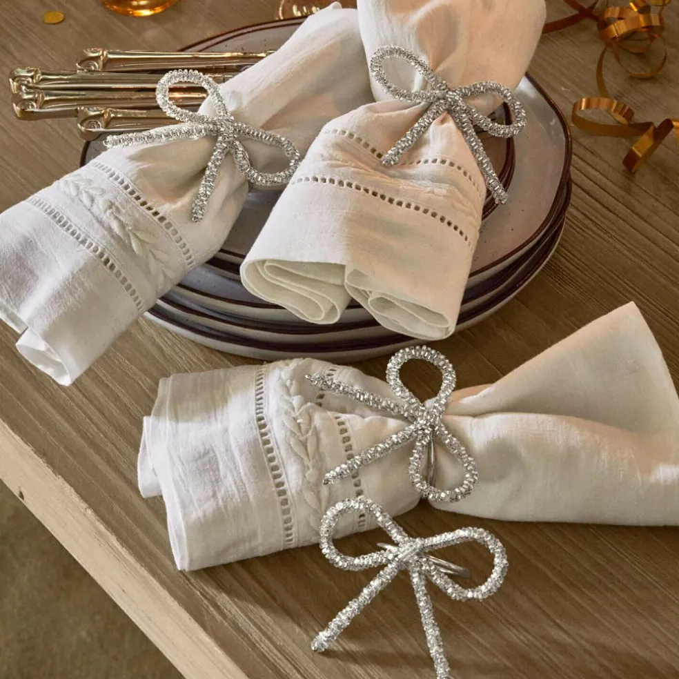 Ces ronds de serviette se présentent comme de petits cadeaux sur votre table dressée – chaque boucle est façonnée avec art, chaque accent de perle est un délicat capteur de lumière. Les perles de verre transparentes captent même les plus petits reflets de lumière et confèrent à l’ensemble de la scène une touche de magie hivernale ou d’opulence festive. L’anneau métallique robuste maintient la serviette en tissu en place et transforme un moment de la vie quotidienne en quelque chose de spécial. Que ce soit pour un dîner élégant en petit comité ou pour attirer l’attention de manière glamour lors d’une fête, ces ronds de serviette apportent des touches étincelantes sans être envahissantes.