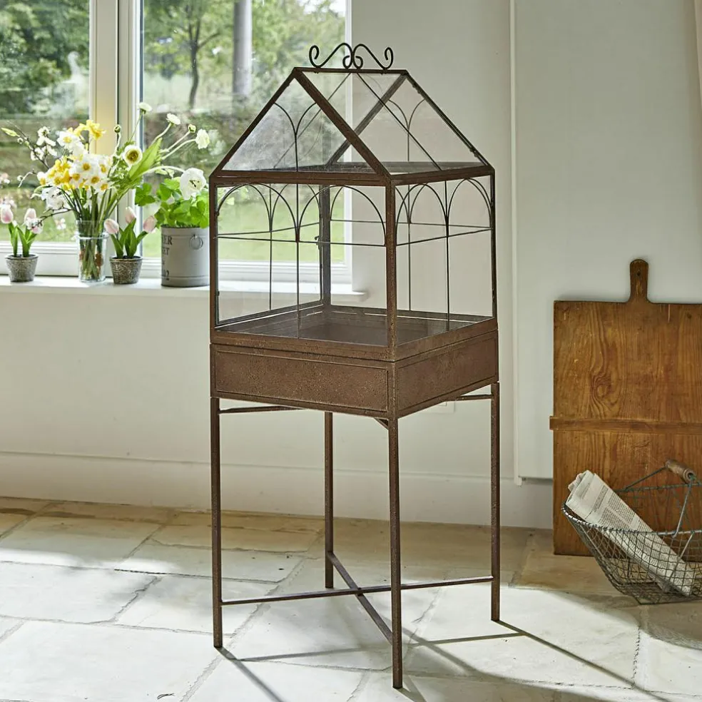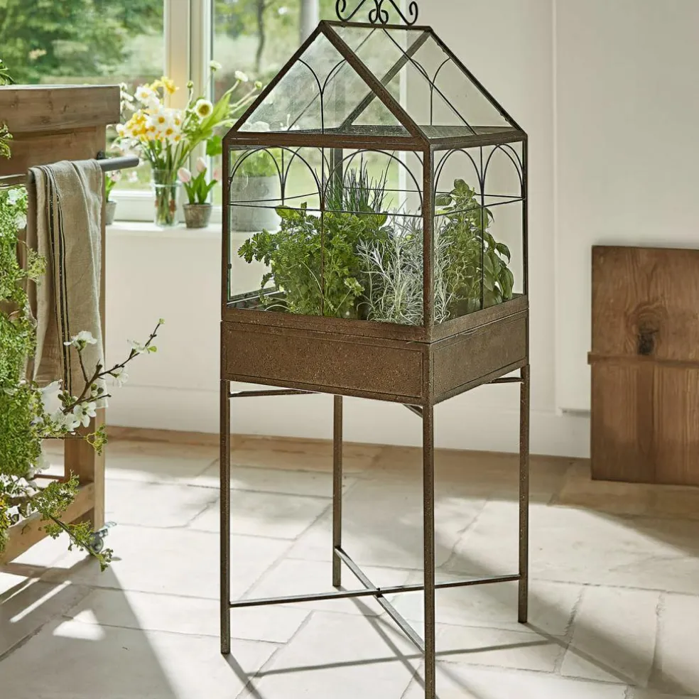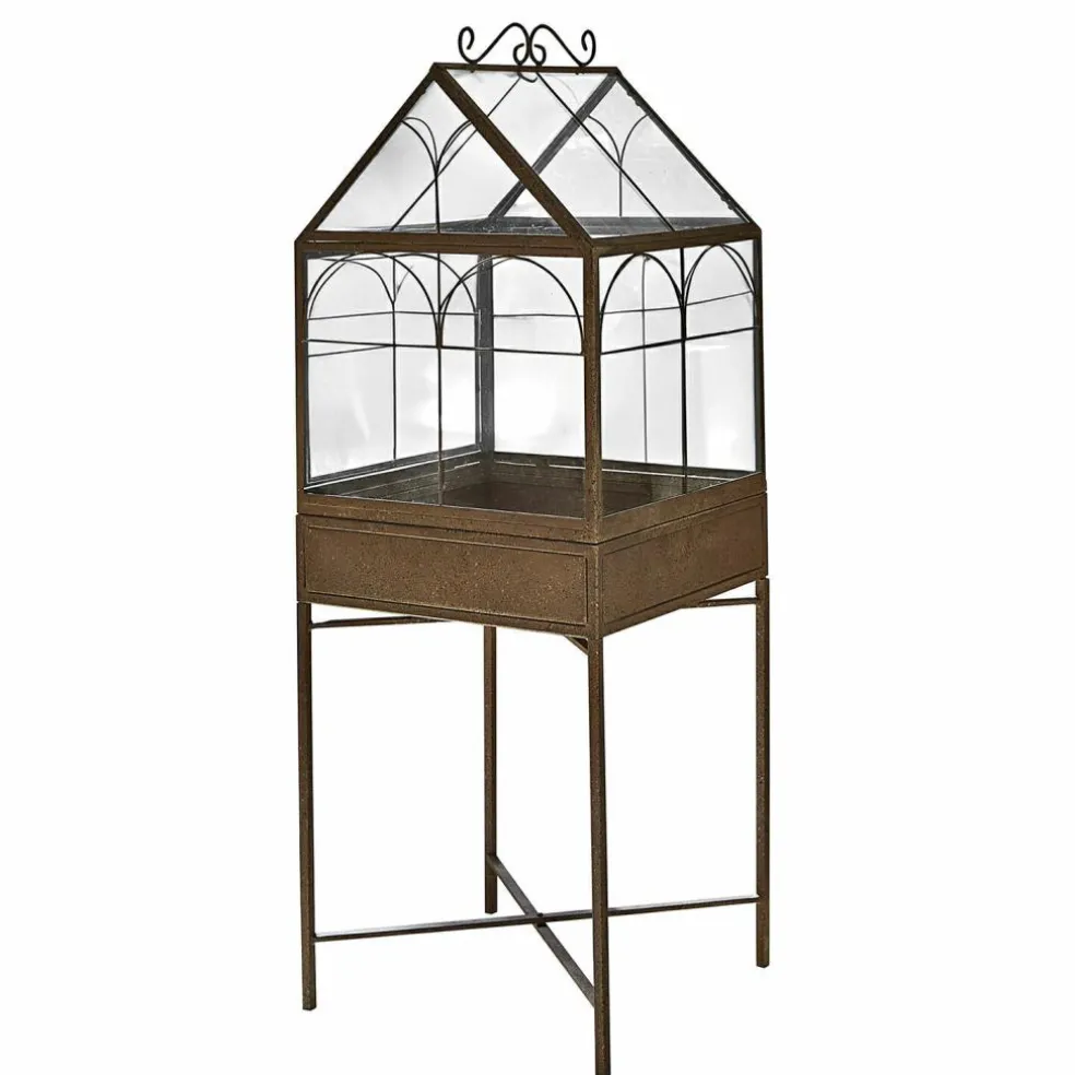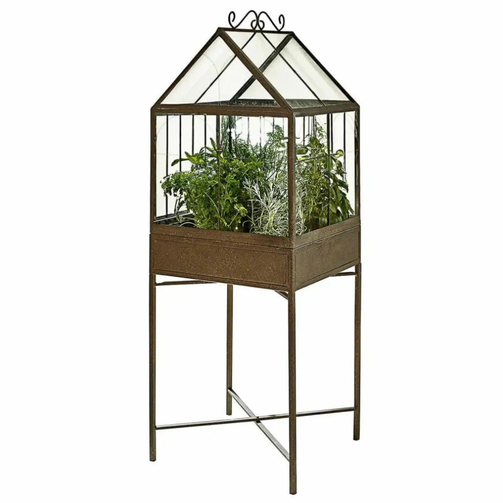 Cette serre d’intérieur se distingue par son style vintage ainsi que par sa conception solide en métal. Les détails joliment galbés et la finition marron vieilli en font un meuble d’exception qui viendra conférer à votre maison une belle touche rustique. Les panneaux pratiques en PVC, dont l’aspect imite parfaitement le verre, accueillent vos plus belles plantes. Exposez-les dans le salon, la cuisine ou sur un rebord de fenêtre pour un effet vert des plus réussis dans votre intérieur. Charmant détail : le mécanisme de fermeture ouvragé apporte une touche vintage en plus. Si vous souhaitez installer cette serre en extérieur, nous vous conseillons de la placer dans un endroit abrité afin de garantir une vie aussi longue que possible à l’article.