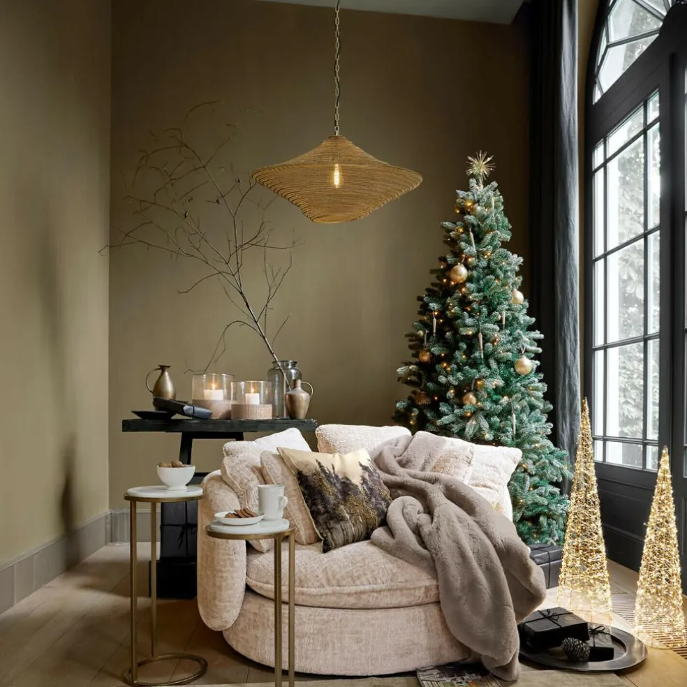 Bien plus qu’une simple source de lumière, cette suspension est une véritable œuvre lumineuse. Son abat-jour plat et évasé, composé de fils métalliques finement entrelacés à la finition dorée antique, révèle, même éteint, une élégance discrète aux accents presque textiles. Une fois allumée, la magie opère : la lumière chaude filtre à travers le tissage métallique, projetant de délicates ombres mouvantes et enveloppant l’espace d’une aura envoûtante, à la croisée des styles oriental, bohème et contemporain. Malgré sa dimension généreuse, la lampe conserve une impression de légèreté aérienne, comme une voile silencieuse suspendue dans la lumière. Parfaite au-dessus d’une grande table, d’un coin lecture ou en pièce maîtresse dans un espace ouvert, elle allie caractère affirmé et ambiance poétique avec brio.