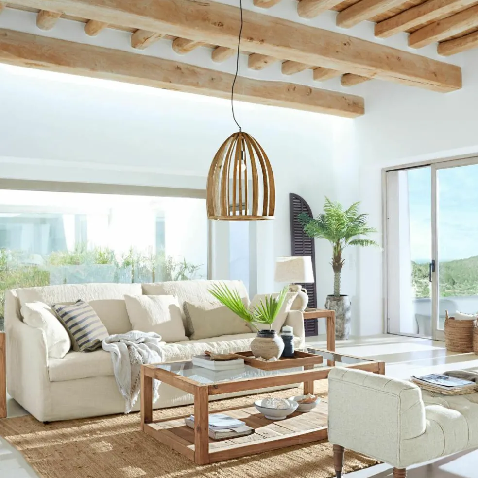 Un vrai coup de cœur pour tous ceux qui apprécient le design minimaliste et naturel. Cette suspension en bois de manguier séduit par sa forme claire et ouverte, à la fois sculpturale et légère. Le bois de manguier naturel confère à chaque pièce une atmosphère chaleureuse et accueillante, tandis que les entretoises en bois créent des jeux de lumière intéressants grâce à leur disposition. La lampe n’est pas seulement une source de lumière fonctionnelle, c’est aussi un objet design et élégant qui incarne parfaitement le look scandinave. Idéale pour les pièces à l’ élégance naturelle et discrète.