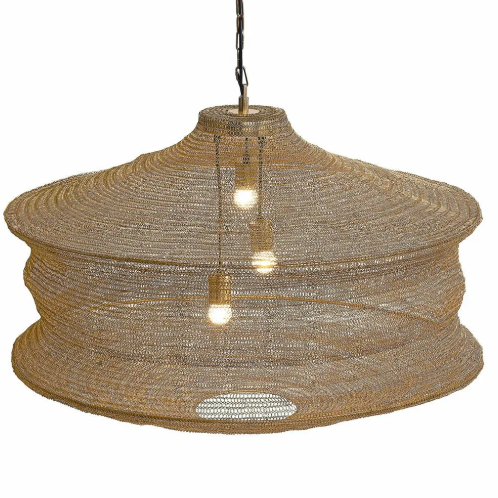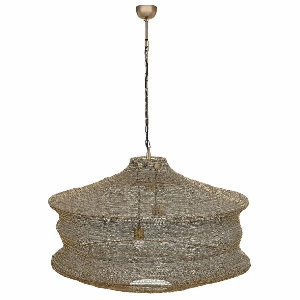 Cette majestueuse suspension en métal magnifiquement tressé est un chef-d’œuvre d’artisanat. Sa forme imposante, rehaussée par son coloris laiton antique, dégage une élégance toute particulière qui apporte à la pièce une atmosphère pleine d’élégance. Son tressage détaillé en métal crée de magnifiques jeux d’ombre et de lumière pour une atmosphère chaleureuse et accueillante. Au-dessus de la table à manger, au salon ou dans l’entrée, cette lampe attire tous les regards: une véritable déclaration d’esthétisme!